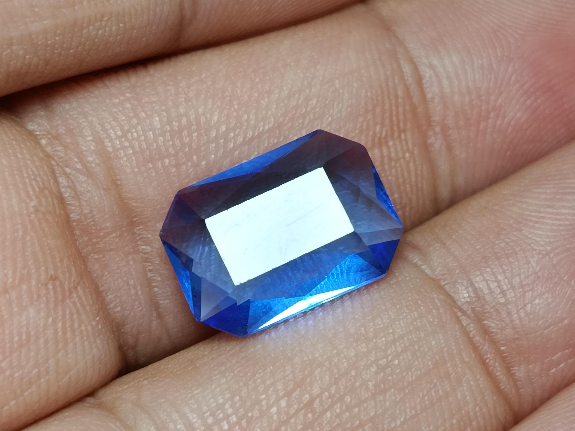یاقوت کبود کریستالی تراش جواهری باگت