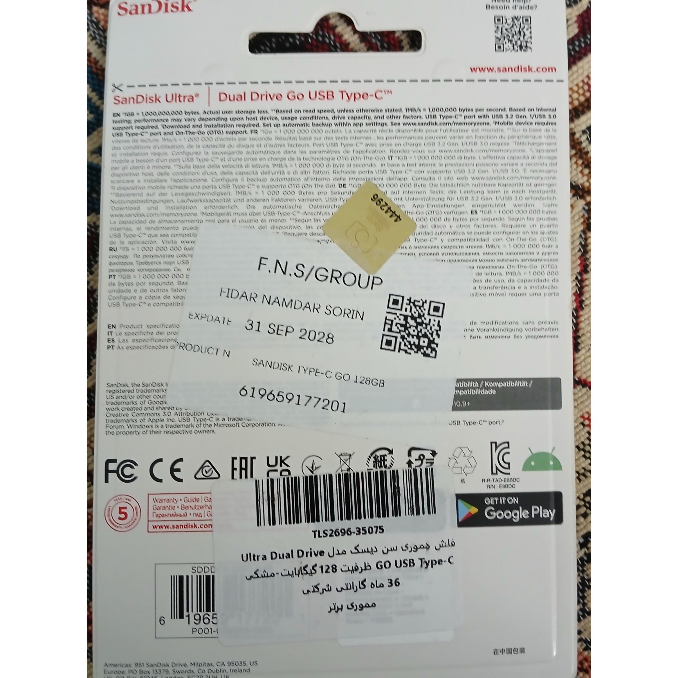 فلش مموری سن دیسک Ultra Dual Drive GO USB 3 ظرفیت 128 گیگابایت