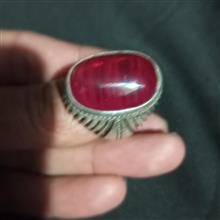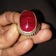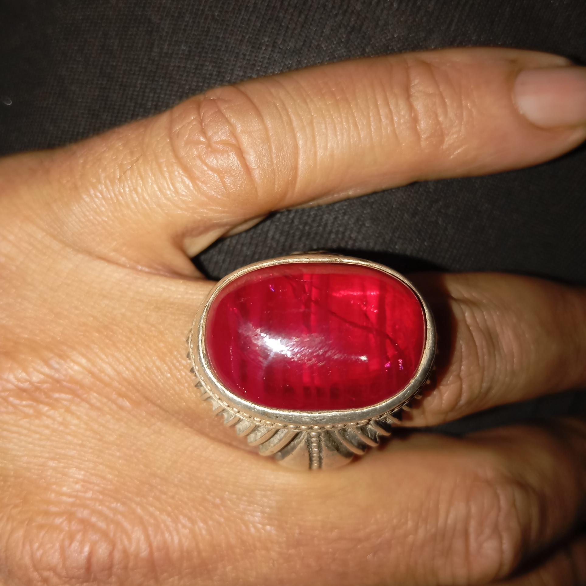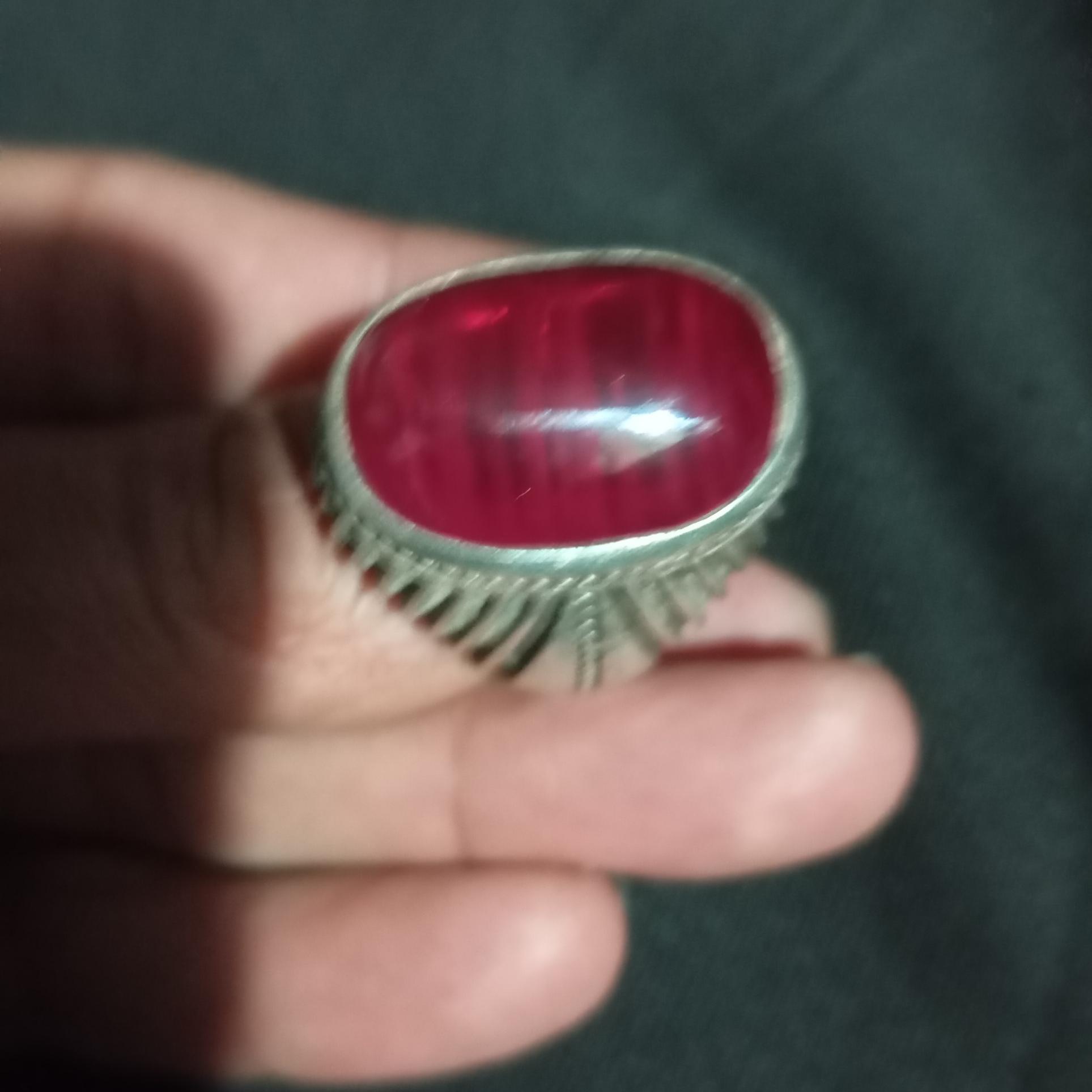 انگشتر یاقوت خون کفتر سنگ ضخیم طبیعی با نشان خط خطوط ناخالصی داخلش نشانه معدنی بودنش رکاب نقره ضخیم دوستان سنگ بسیار کهنه هست اصیل که موقتا سوار شده  اینکاره میشناسن ومدت که خرید میکنن تا فیدبک بزنن میتونند کارشناسی بکنند یا دستگاه بزنند. قیمت نسبت به طبع رنگ مناسب زدم  وزن سنگ ندارم تصویر مشخصه حجم قواره وضخامتش. یاحق