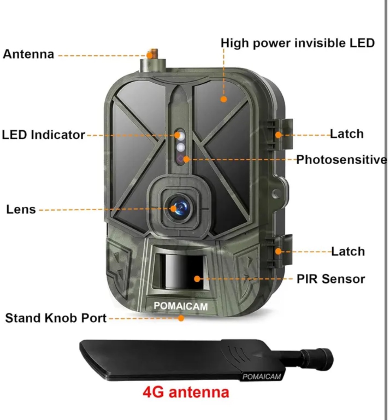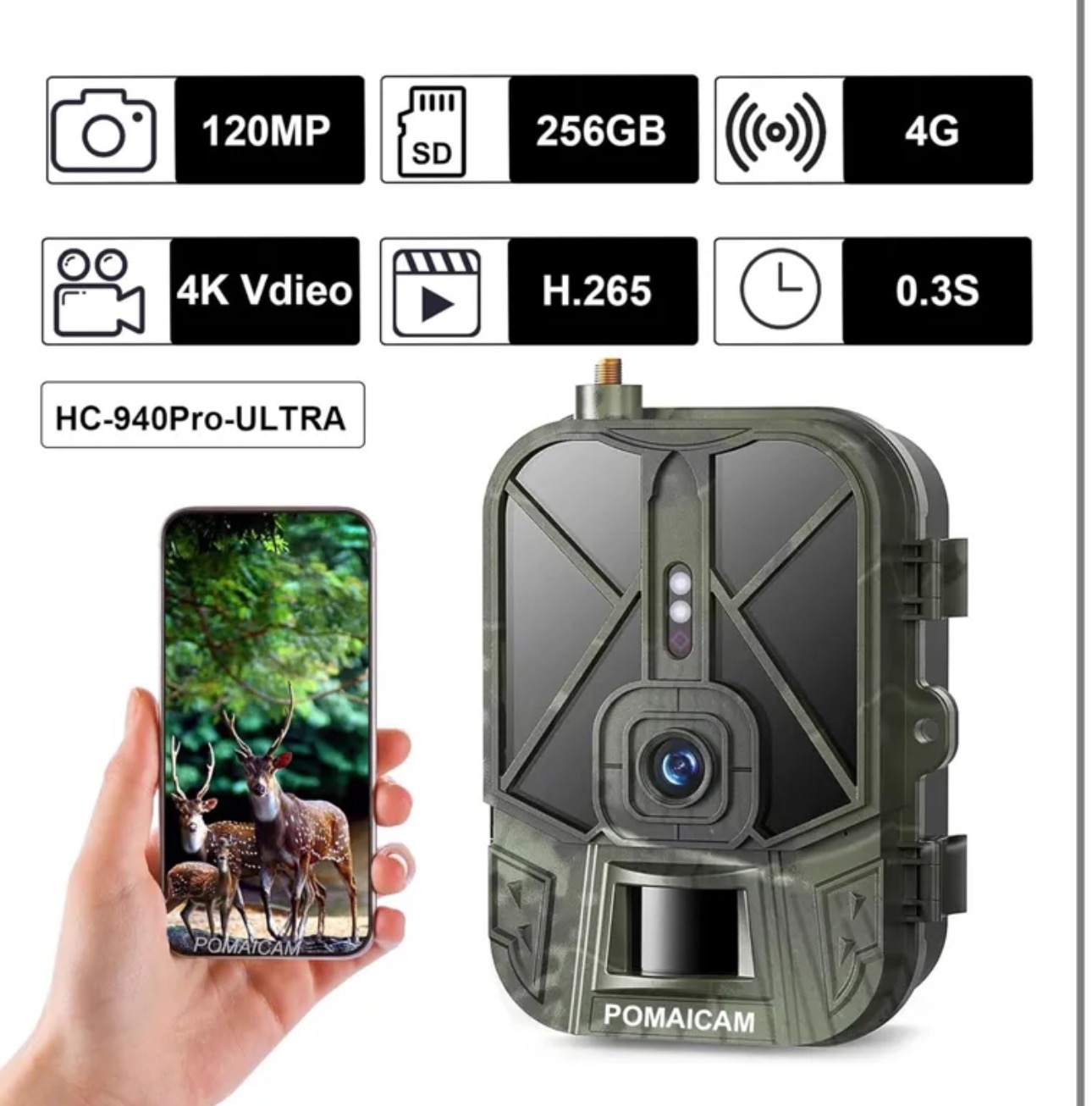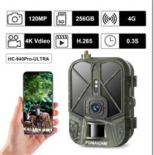 دوربین حیات وحش POMIACAM مدل HC-940Pro-ULTRA با کیفیت 120 مگاپیکسل و قابلیت فیلمبرداری زنده 4K و قابلیت عکسبرداری تله ای 4G با LED مادون قرمز، دید در شب، تشخیص حرکت، باتری لیتیومی داخلی 8000 میلی آمپر ساعتی، IP65 ضد آب، دوربین نظارت بر حیوانات در فضای باز