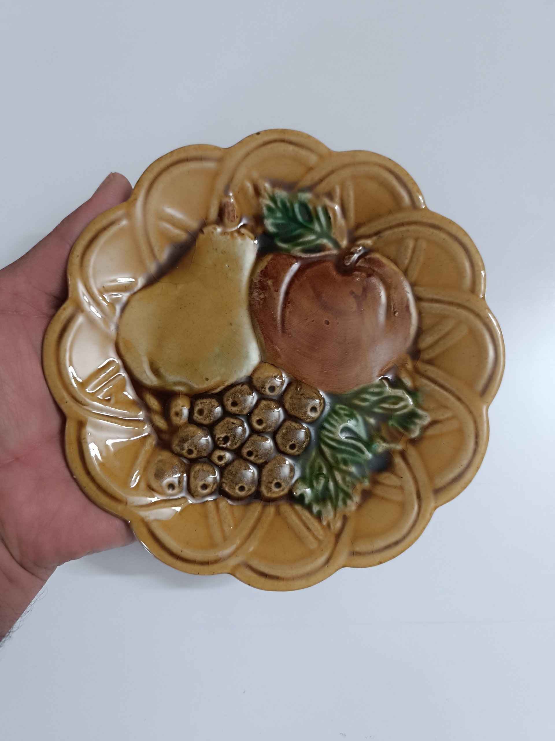 یک عدد پیش دستی دیوار کوب ، سرامیک لعابدار ، قدیمی ، آنتیک و کلکسیونی و نوستالژیک ، سالم و تمیز و مرتب و نو ، کیفیت و ابعاد مطابق تصویر