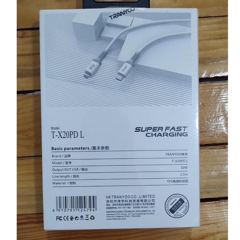 کابل تایپ سی به لایتنینگ 30 وات 1.5 متری ترانیو
