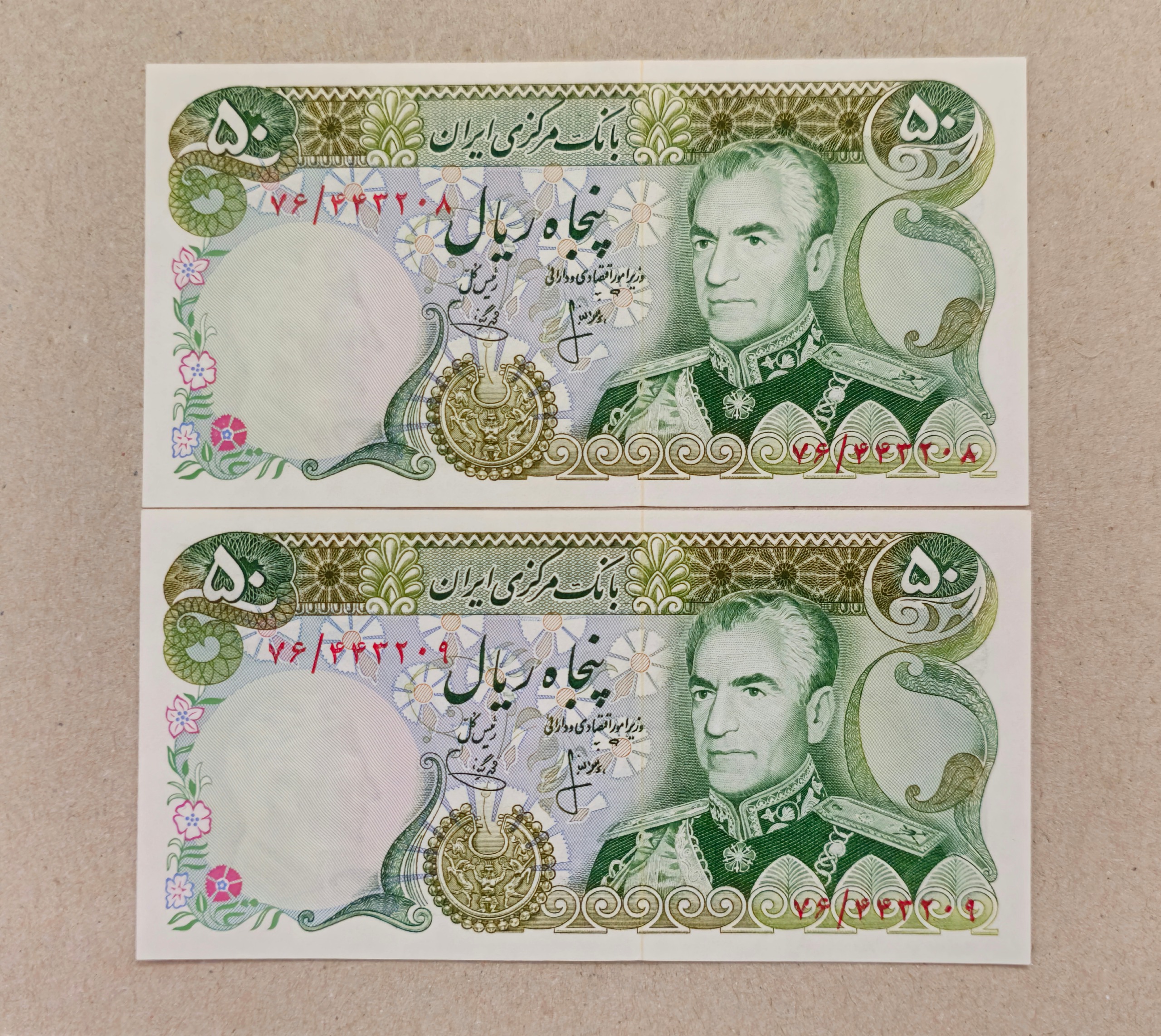 جفت سوپربانکی اسکناس 50 ریال شانه پهن
