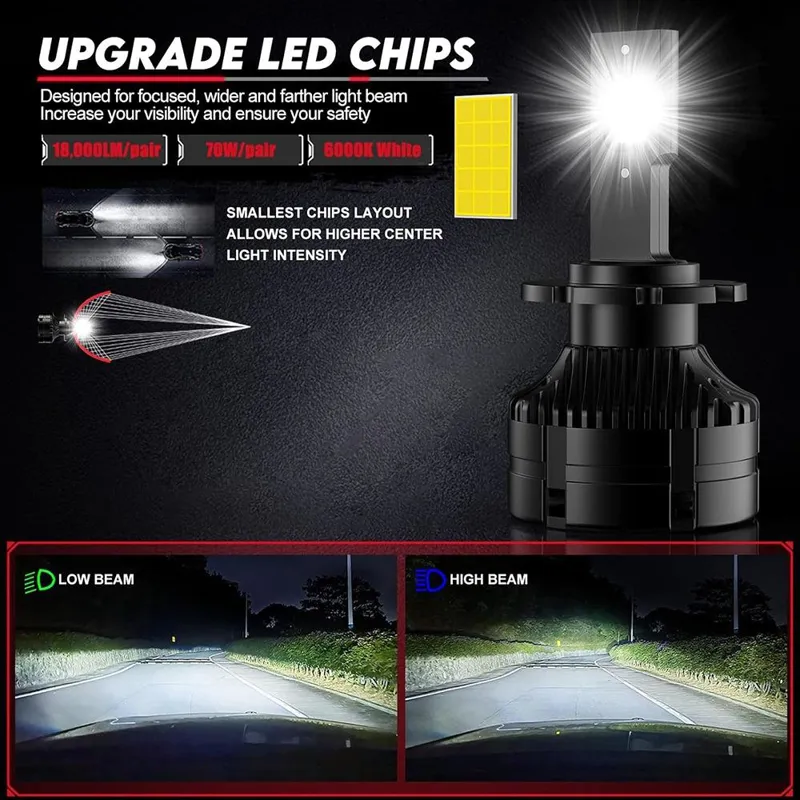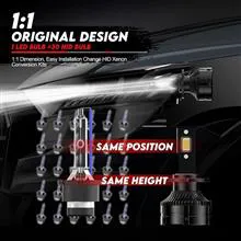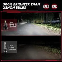 فناوری 300 درصد افزایش روشنایی: جدیدترین تراشه های LED سفارشی لامپ های LED D2S/D2R/D2C ما، 30 عدد مهره لامپ در هر لامپ، شار روشنایی کلی تا 18000LM. 70w/pair، قدرت بالا اما کم مصرف. 3 برابر روشن تر از لامپ های زنون سنتی، دید بهتری را برای رانندگی در شب شما ارائه