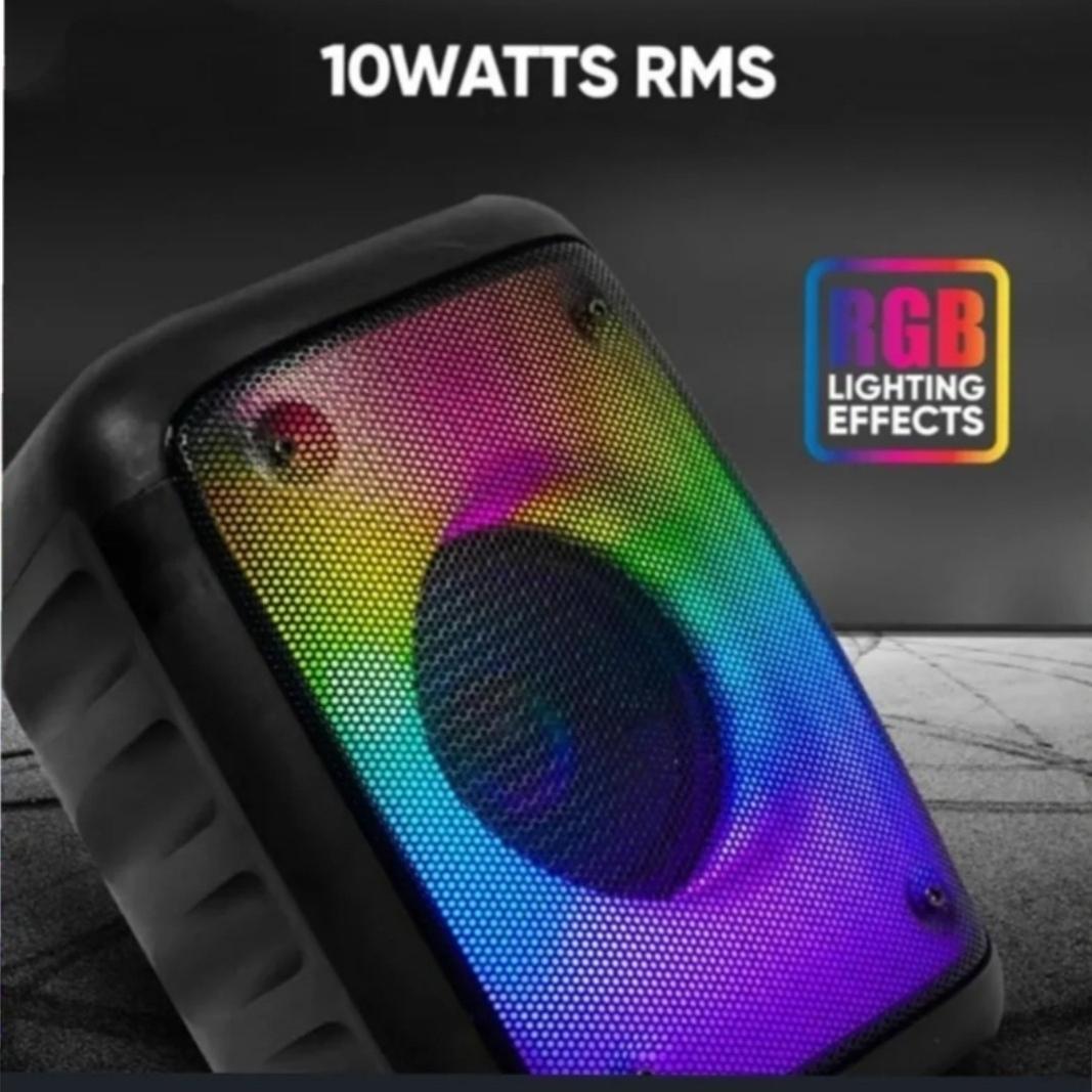 این اسپیکر به صورت ایستاده و به همراه یک دستگیره جهت حمل راحت و آسان طراحی شده که در تفریحات و دور همی های خود با صدای فوق العاده شفاف ، باس عمیق استریو 360 درجه همراه با رقص نور RGB چند رنگ با ریتم و ضرب موزیک جلوه خاصی را به فضا و مهمانی های شما خواهد