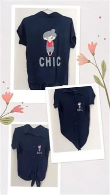 شومیز دخترانه نخی پایین گره ای شیک بهاره تابستانه