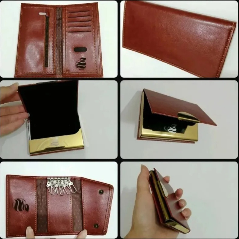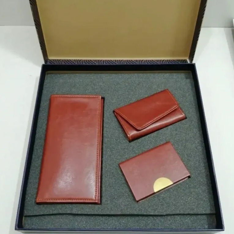 شامل کیف پول ، جاکارتی، جاکلیدی و جعبه کادویی محکم هدیه بوده و کاملا نو هست جنسش واقعا خوب هست مناسب هدیه دادن و روز مرد و تولد و ...