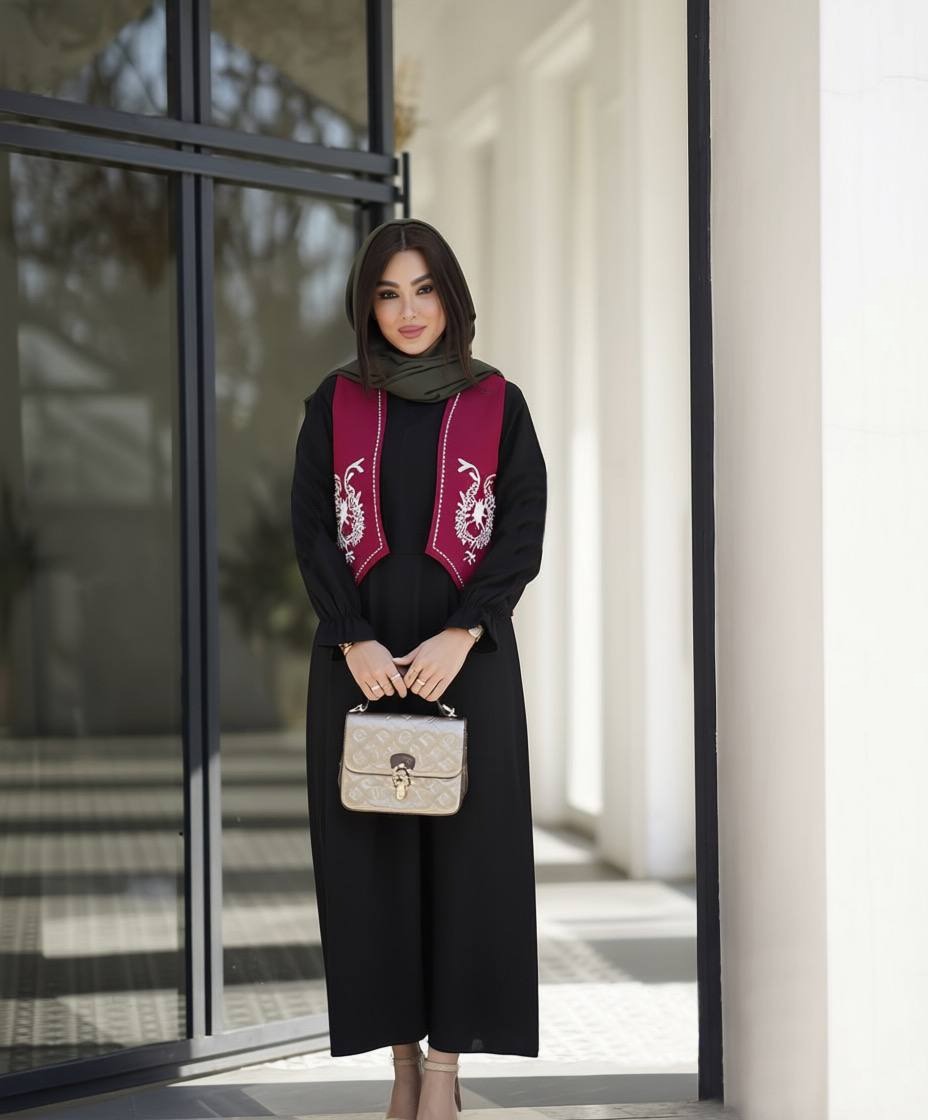 سارافون آستین دار بعلاوه یک جلیقه مخمل گلدوزی شده روش