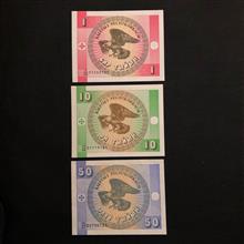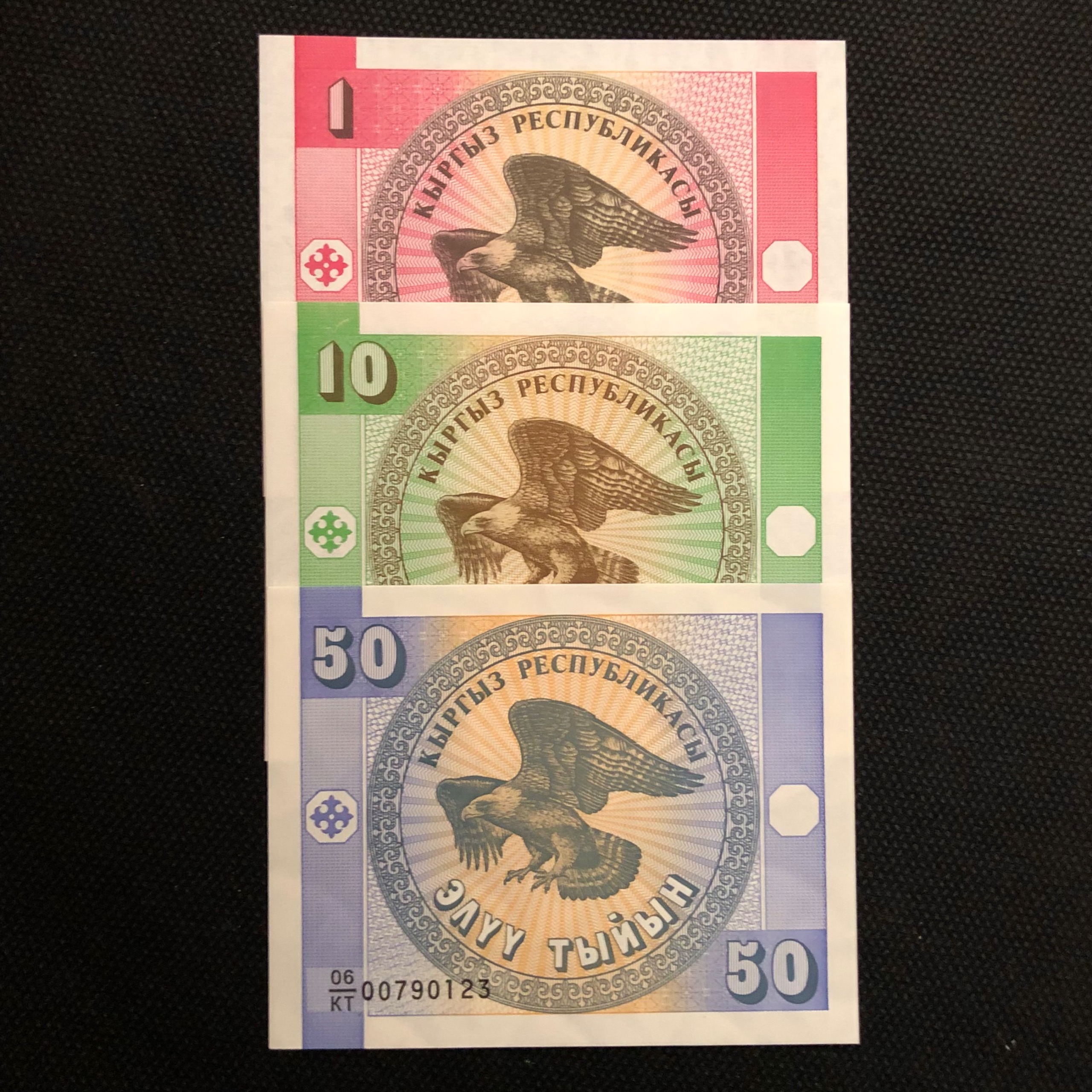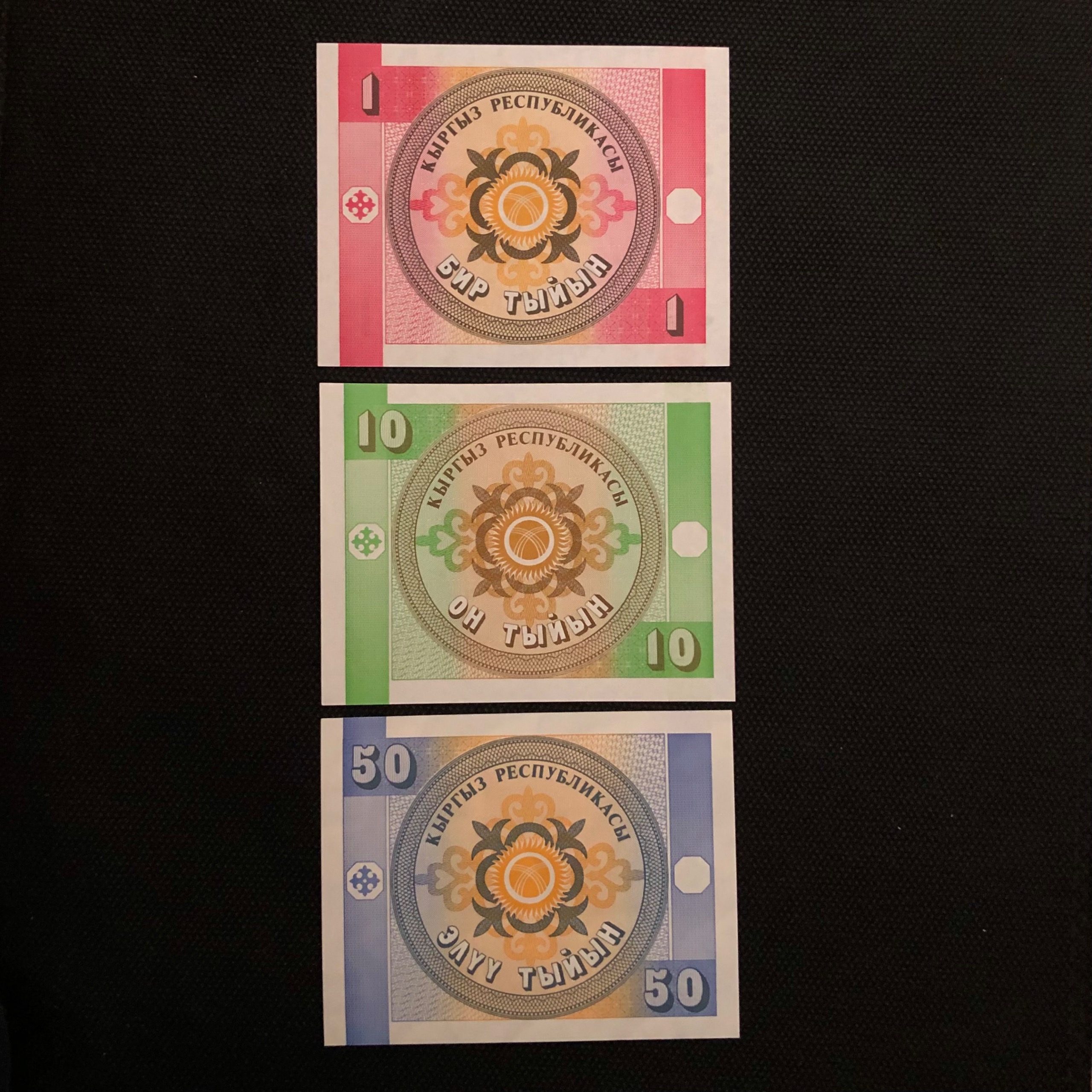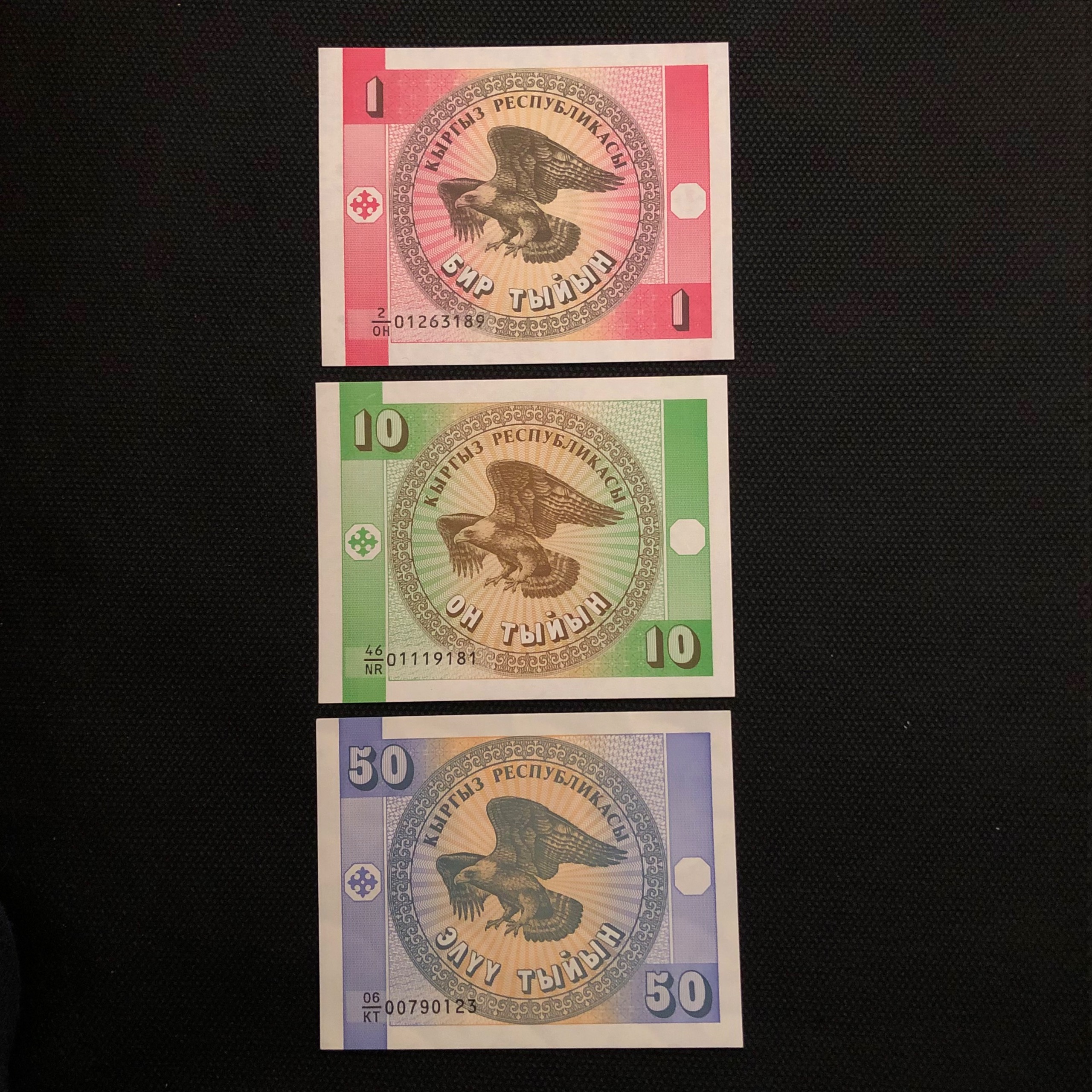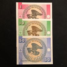 سه عدد اسکناس تک بانکی1و10و50تین قرقیزستان