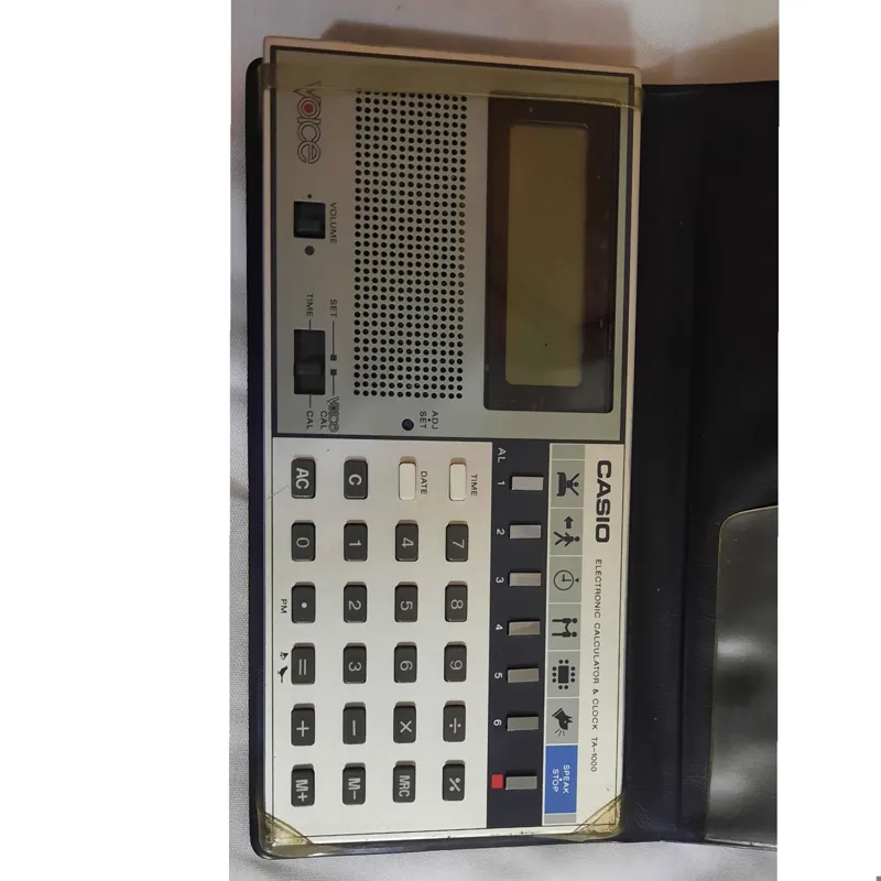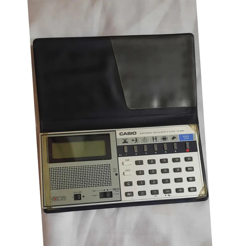 ساعت و ماشین حساب الکترونیکی سخنگو کاسیو ژاپنی جهت کلکسیون.قیمتش در سایت eBay حدود 75 دلار هست که عکسشا گذاشتم برای حدود 35 الی 40 سال پیش هست.کارکردش هم به این صورت هست که در صورت استفاده از دکمه های عدد برای ماشین حساب.با زدن یه کلید پایین حالت ریلی تمام کارکرد و اعداد توسط سخنگو گفته میشد و یا تاریخ و ساعت را همینطور.