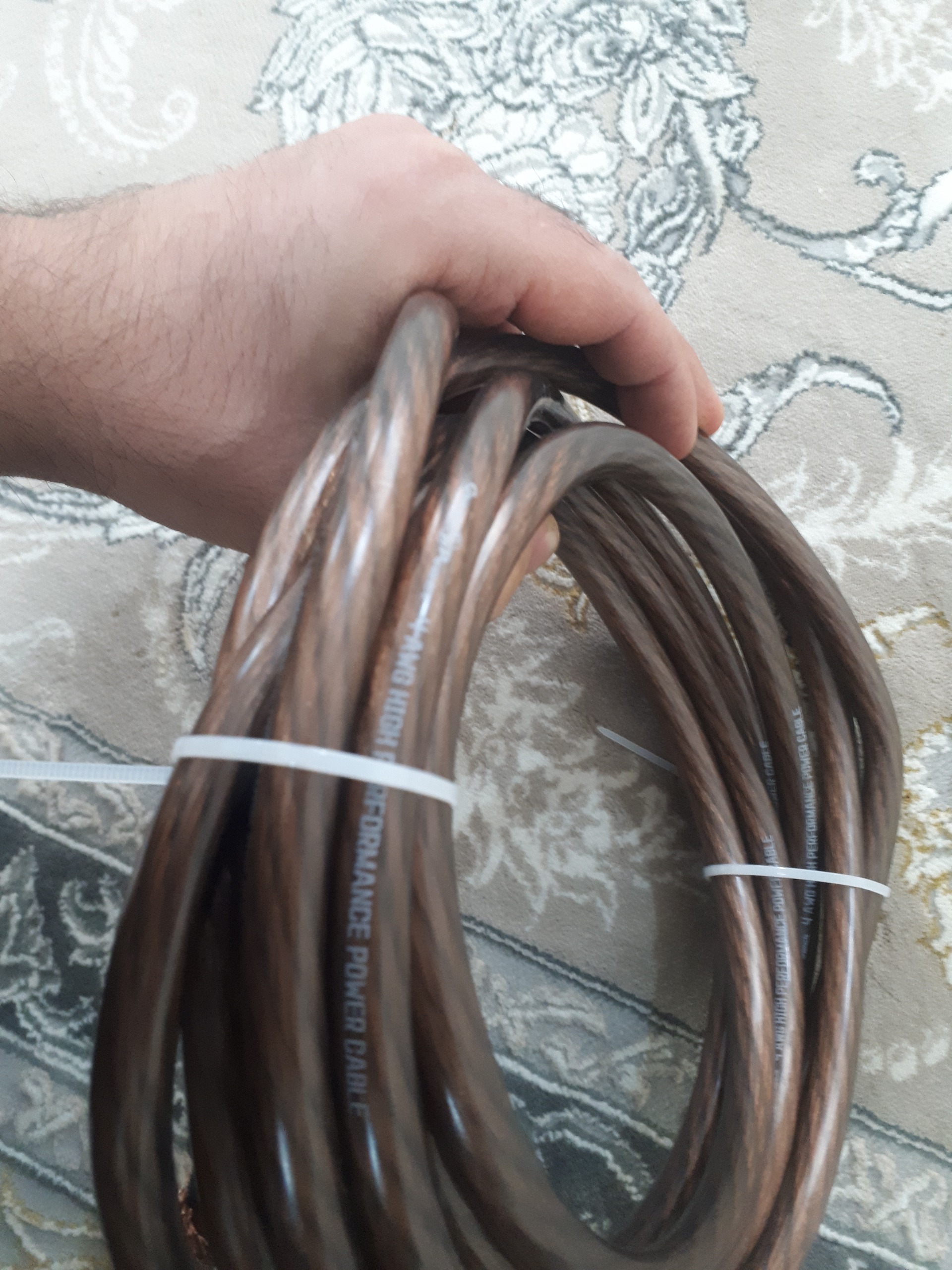 چهار متره و 10 سانت کابل یک تیکه 4 گیج گرند پاور به همراه 7 عدد تیکه 8 گیج، برای اتصالات منفی، قبل فیوز و بعد از تقسیم