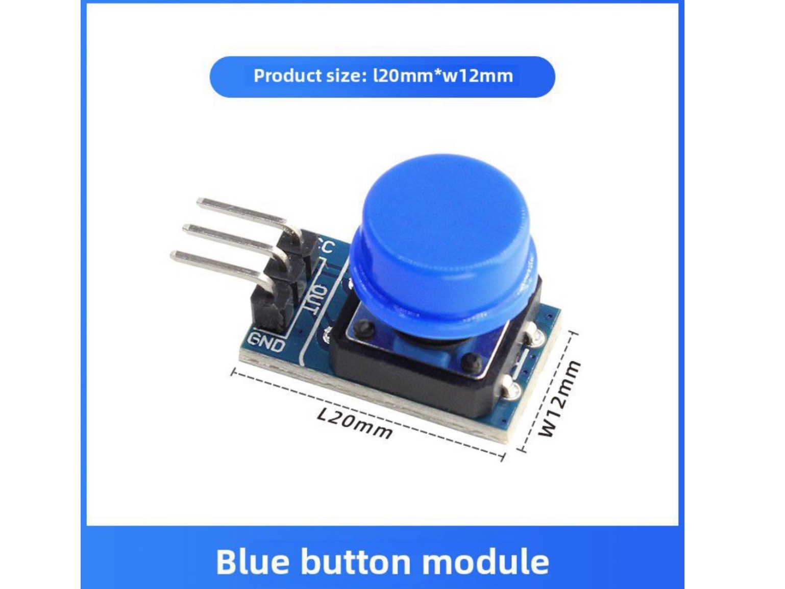 ماژول سوئیچ فشاری 12 در12mm با سر شاستی (آبی)