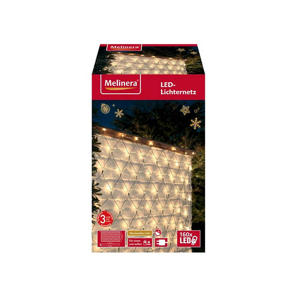 این توری یا پرده نوری کریسمس شامل LED های کم مصرف با نور سفید گرم است. این پرده نوری یا توری نوری با 160 LED کم مصرف، بلافاصله فضایی کریسمسی ایجاد می کند. چراغ های کریسمس را می توان در داخل یا خارج از منزل آویزان کرد (IP44). روشنایی