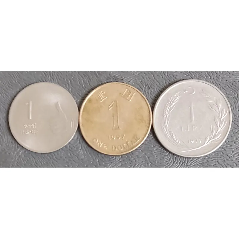 سکه 1 روپیه هند 2010 و 1 لیره پاکستان 1977 و 1 دلار هنگ کنگ
