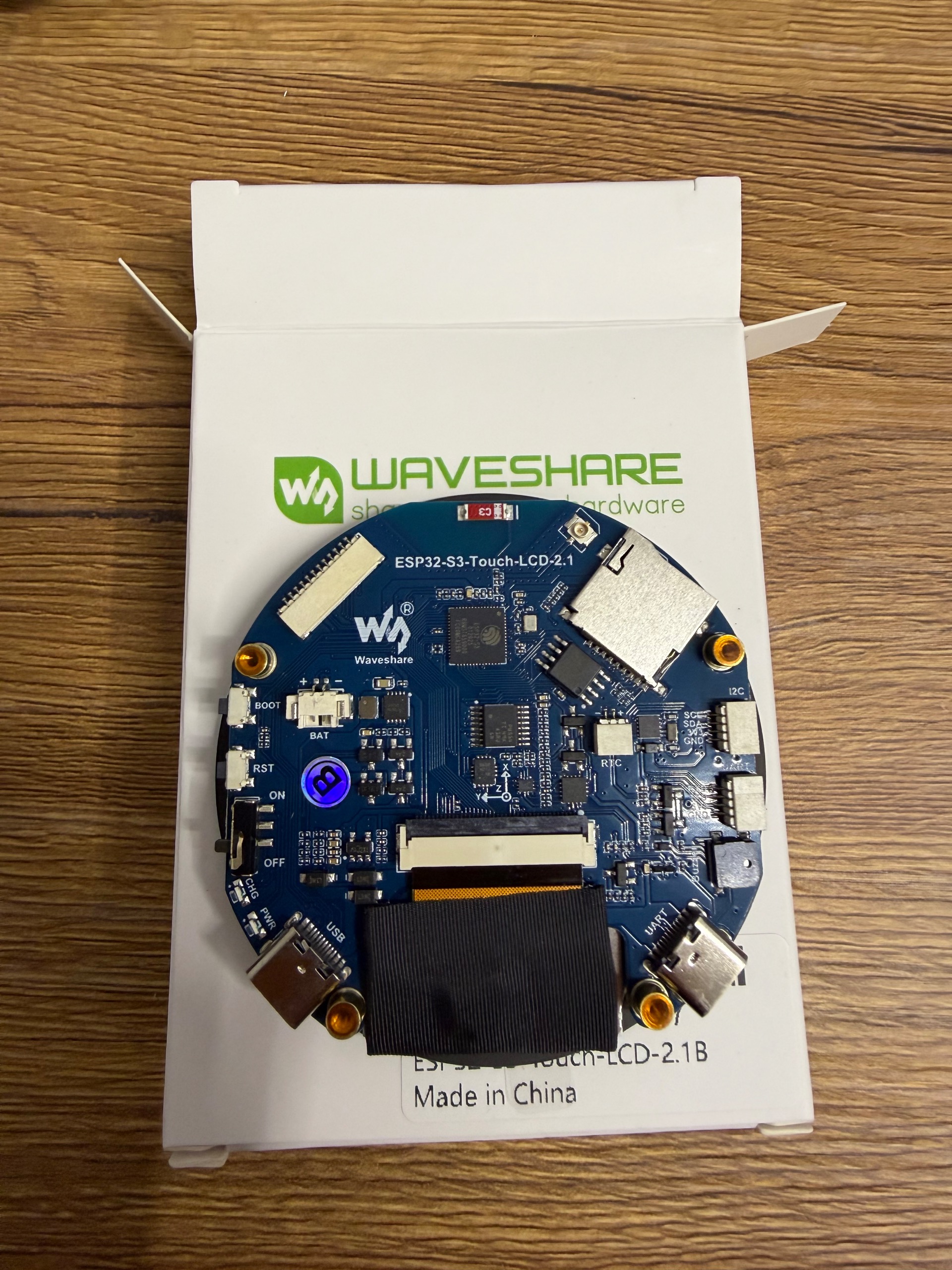 برد توسعه ESP32-S3 همراه با نمایشگر گرد 2.1 اینچی، این نسخه 2.5D میباشد که نمایشگر حاشیه کمتر و محدب هست.