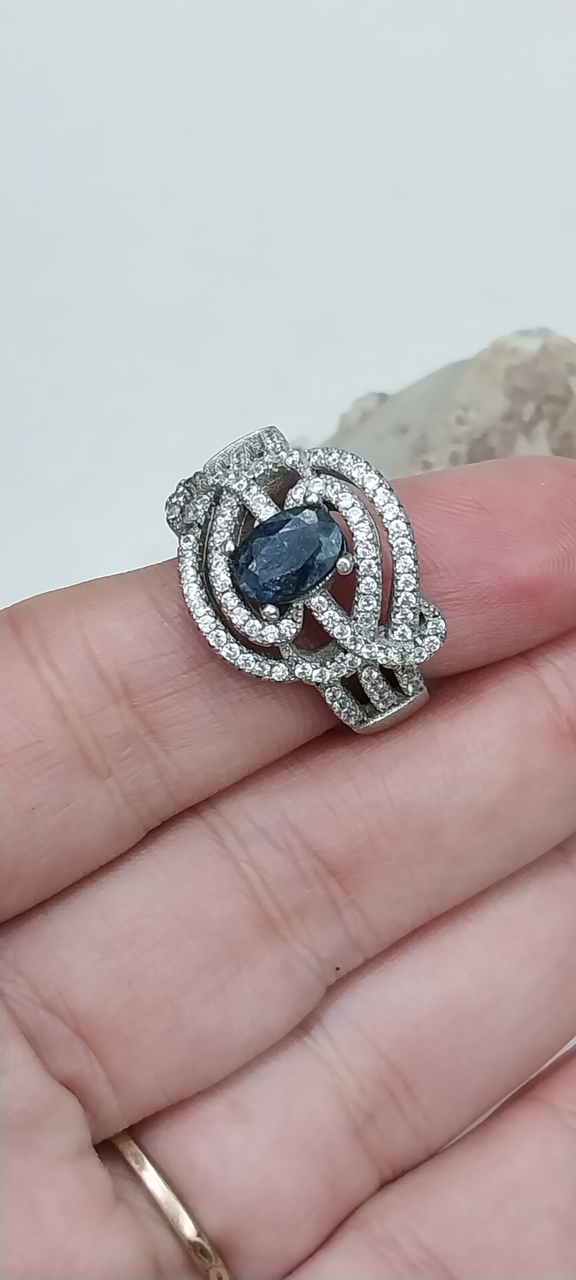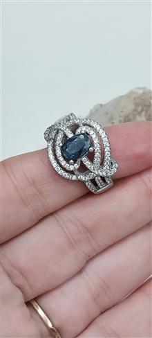 انگشتر نقره 925 نگین یاقوت کبود طبیعی8.17