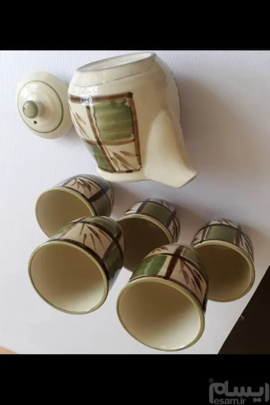 قوری و فنجان قدیمی که مارک ونشان ندارد ، اما طبق نظر متخصصان ( هندی ) و قدمت تقریبی 40 سال دارد ، فنجانها سالم بدون ترکیدگی و لب پر ، قوری ترکیدگی در قسمت پائن دارد که از بیرون وداخل طبق تصویر مشخص است که ریزش آب ندارد ، اما من قوری را معیوب و غیر قابل مصرف مینویسم. " مشخصات " قوری : ارتفاع 13 و طول 17/5 ، عرض دهنه 10/5 سانت ، وزن 525 گرم ، فنجانها : ارتفاع 6/5 ، قطر دهنه 7/3 ، قطر پایین 4 سانت ، وزن پنج تا 972 گرم ، قیمت درج شده قیمت شش تا میباشد ، بسیار زیبا و ظریف که برازندگی خاصی به دکوراسیون می بخشد .