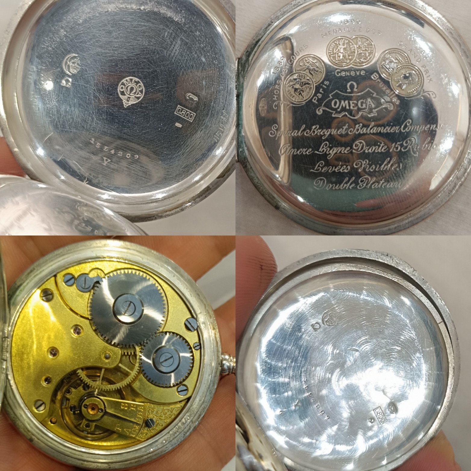 قاب: نقره اصل عیار 0.800 (دارای مهر رسمی نقره و لوگوی امگا داخل قاب)