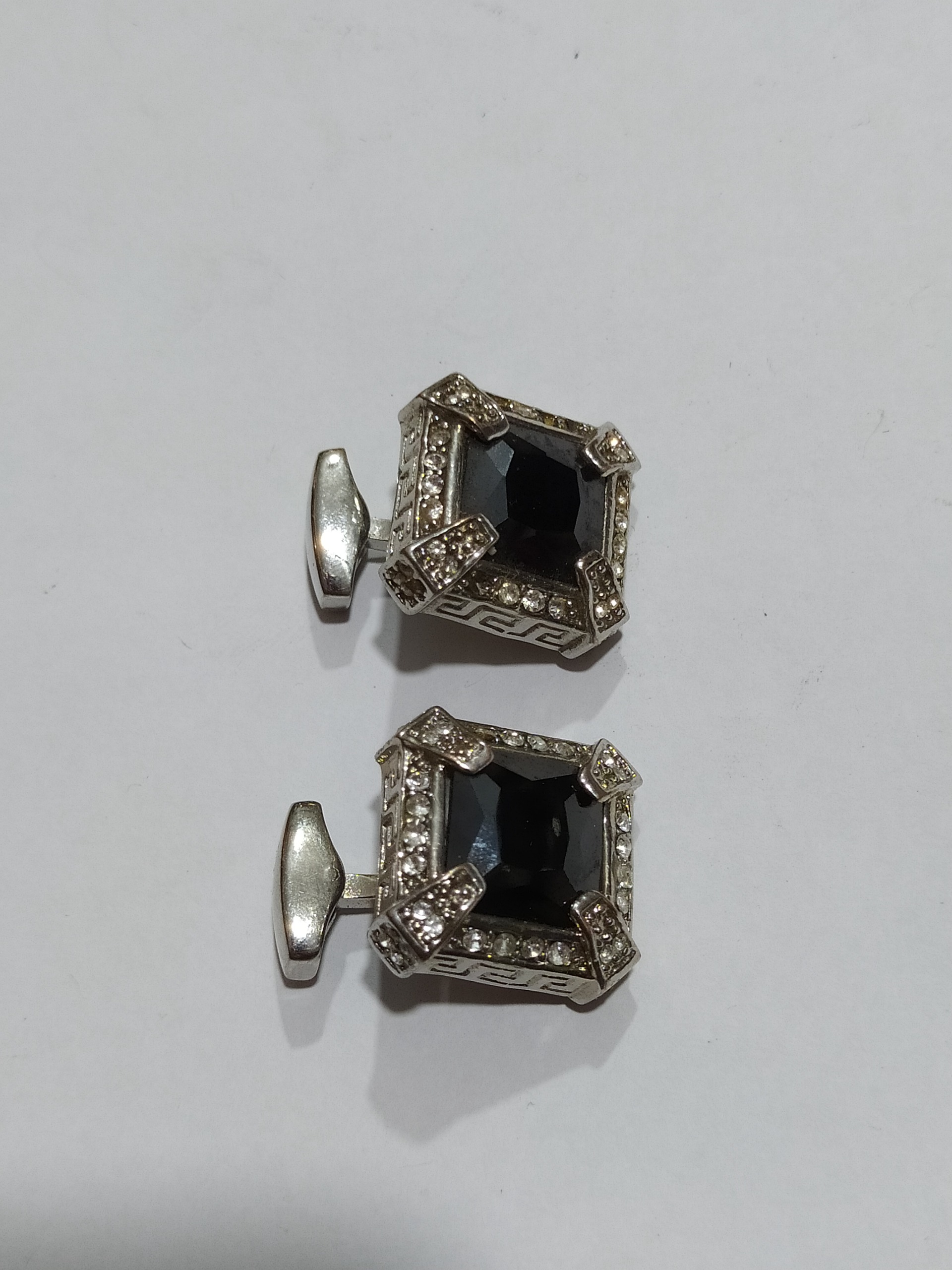 یک جفت دکمه سردست قدیمی نگین شبق اونیکس تراش