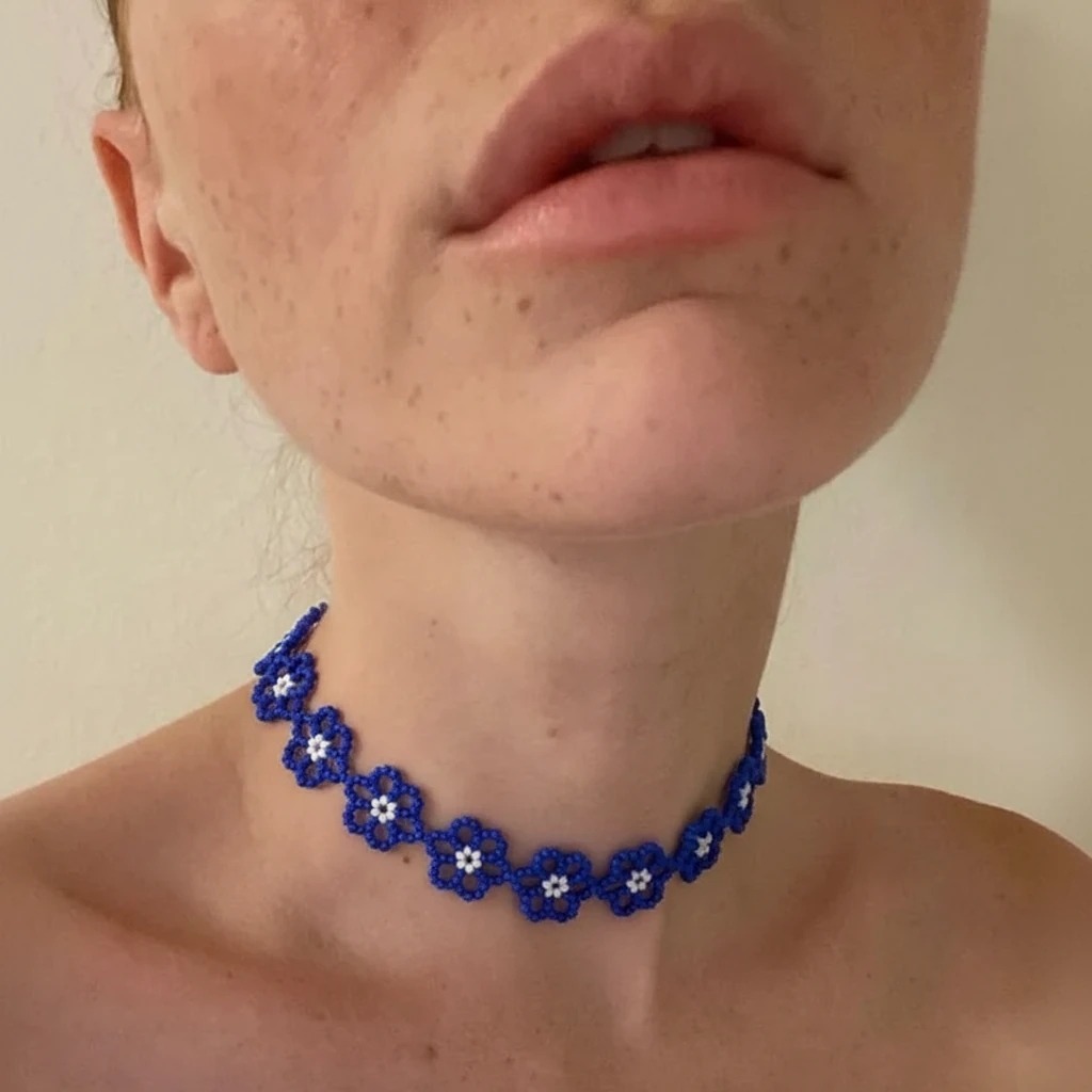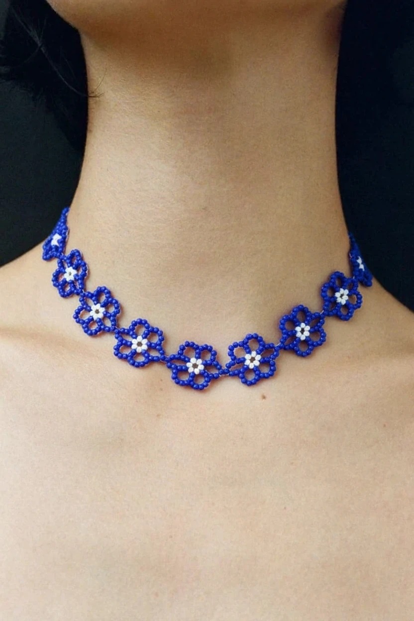 گردنبند منجوق دوزی طرح گل