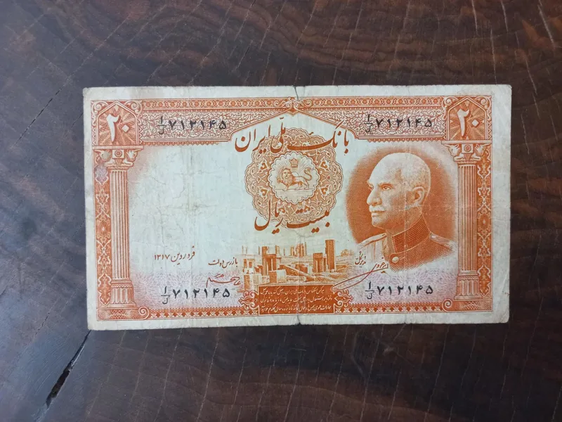 اسکناس 20 ریالی بکر رضا شاه دارای ارور کادر