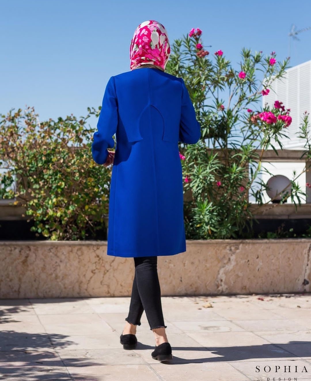 مانتو مزونی ضخیم آبی کاربنی سایز 40
