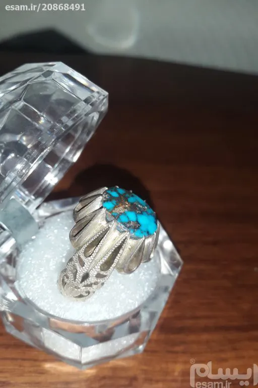 انگشتر بسیار خوش دست  صد در صد دستساز رکاب تمام اره کاری فیروزه معدنی نیشابور خوشرنگ درشت زنده با سایز تقریبی 66  رکاب نقره عیار 95