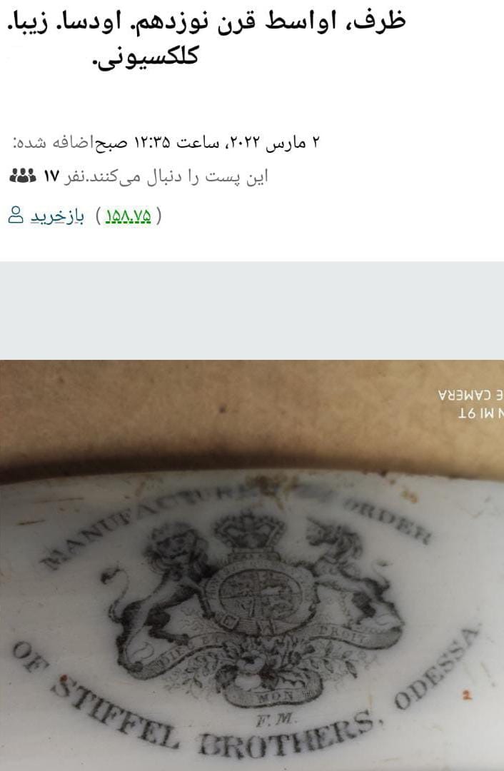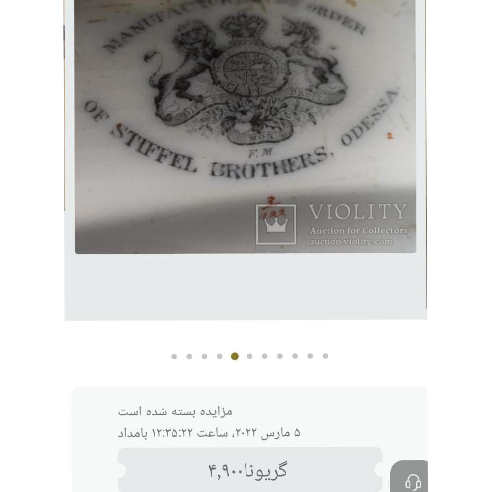 یک عدد پلاک دیوار کوب قدیمی انگلیسی سفارشی سازی شده برای برادران استیفل ، اودسا ، کار قلم قهوه ای دست ساز ، نقش و رنگ کار دست ، منحصر به فرد ، قدمت طبق ارزیابی آنتیک سراهای بین المللی به حدود اواسط قرن نوزدهم باز میگردد که برادران استیفل یه سری ظروف رو بصورت سفارشی برای خود سفارش داده بودند. نمونه ترجمه شده از یک آنتیک سرای خارجی در تصاویر گنجانده شده است ، کیفیت و ابعاد مطابق تصویر