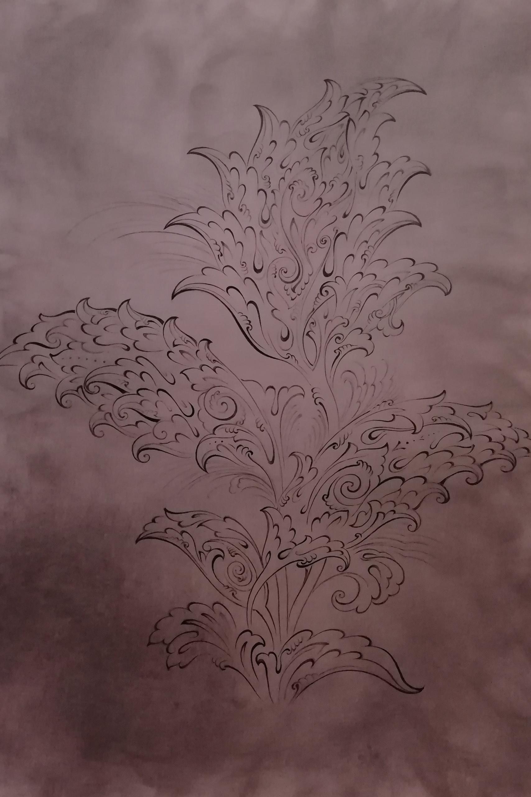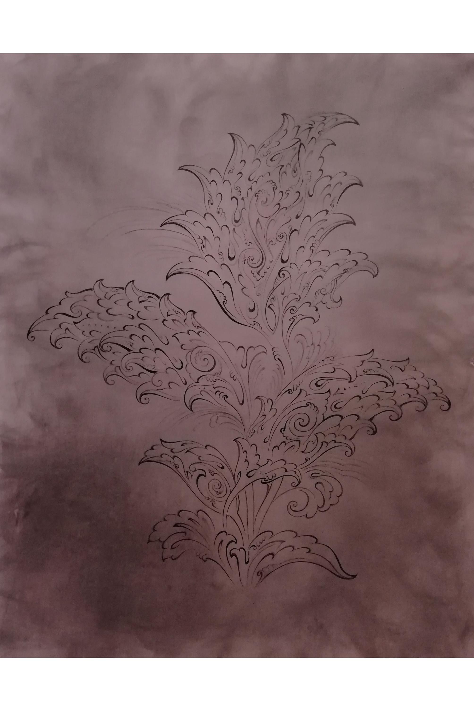 تابلو نقاشی تذهیب گل های انتزاعی به سبک قلمگیری