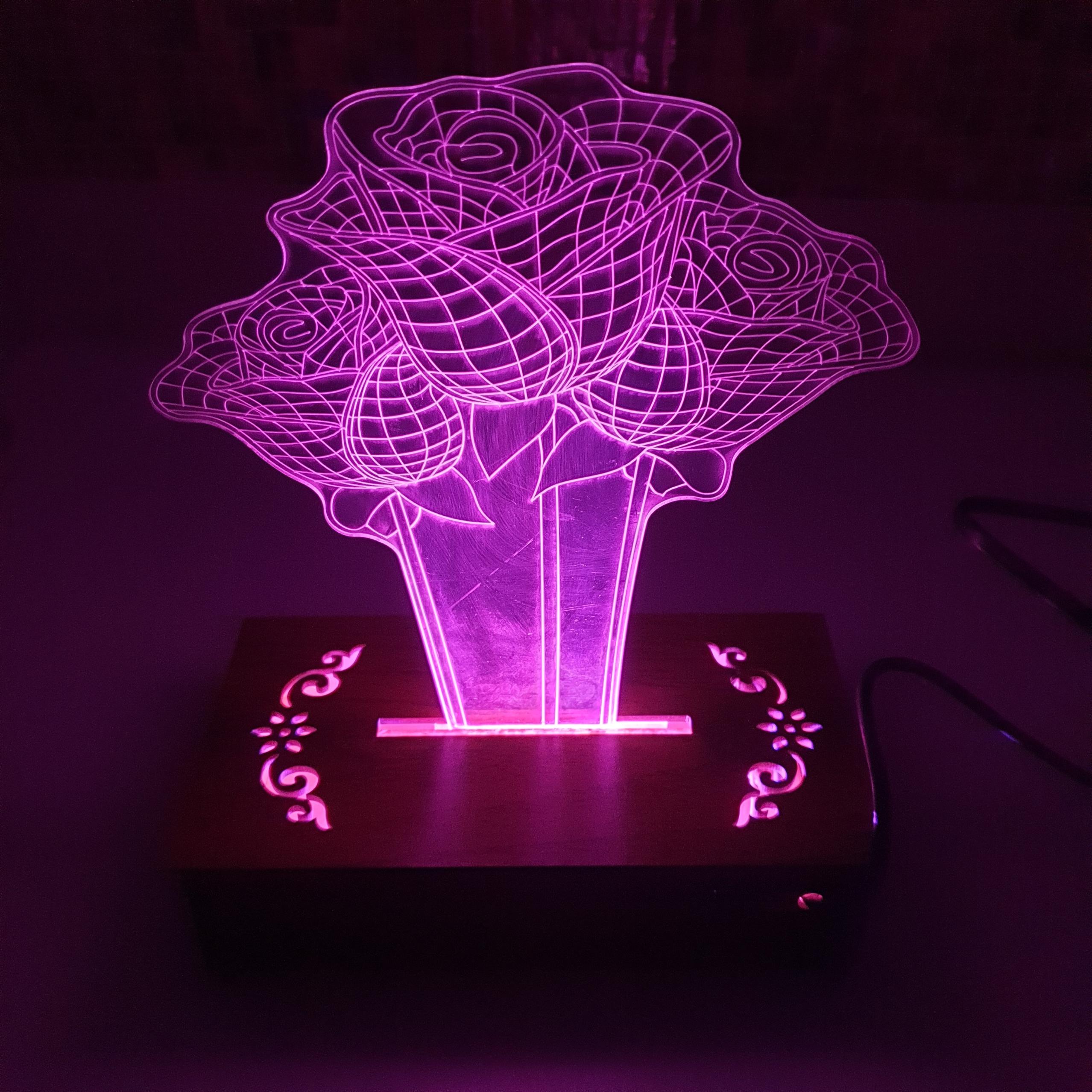 بالبینگ دسته گل چراغ خواب رز با نور بنفش