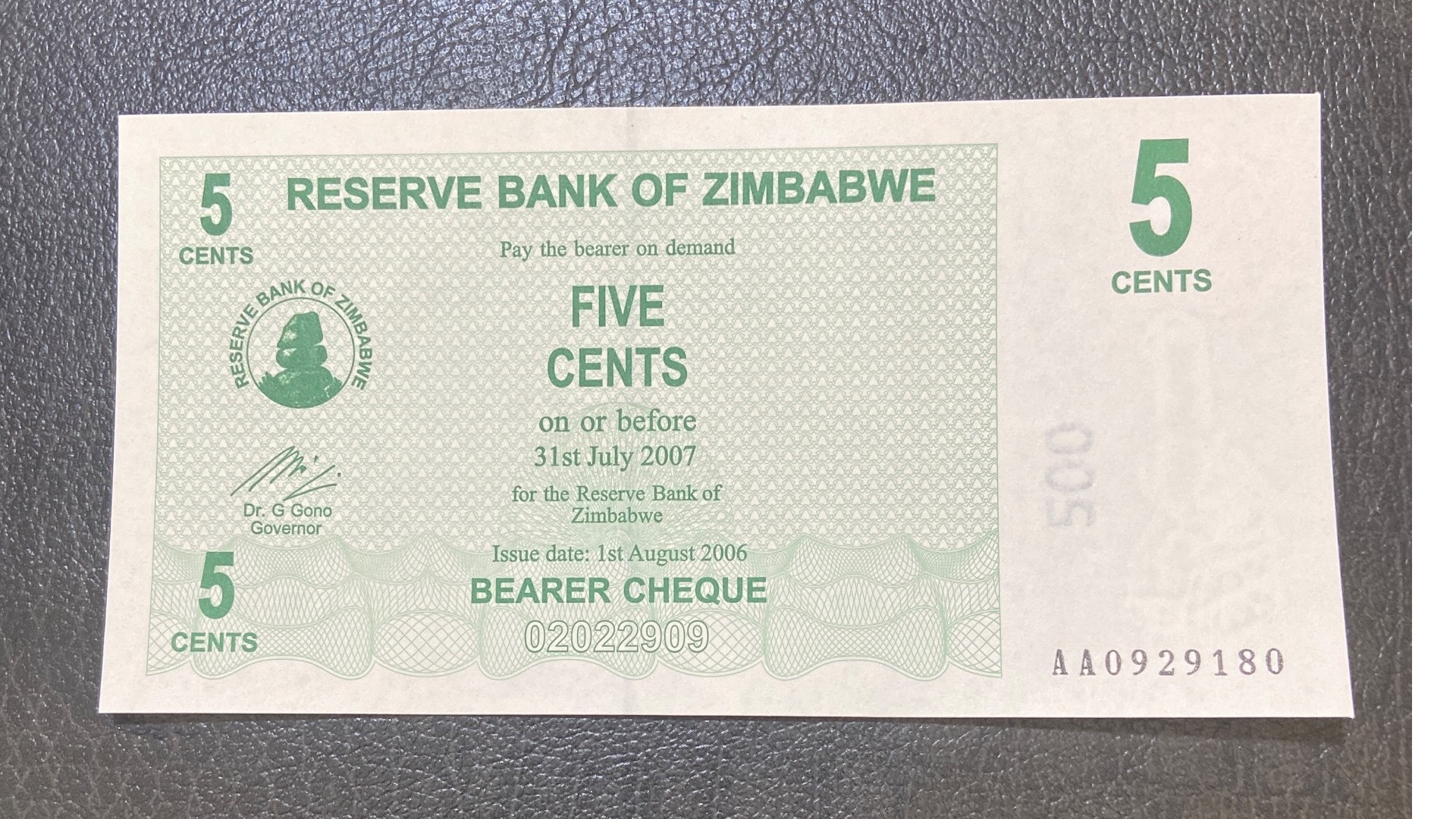 اسکناس 5 سنت زیمبابوه