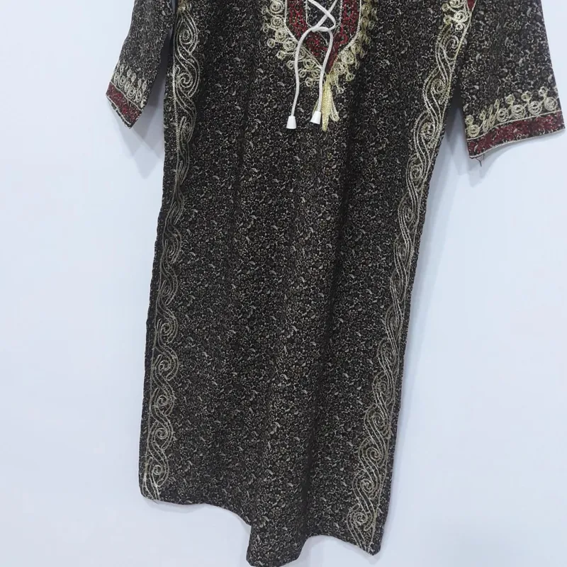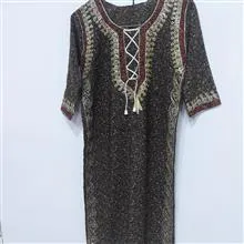پیراهن طرح سنتی جنس کرپ نخ قسمت گردن و دو پهلو و آستین کار شده کیفیت عالی تن خور شیک قد92 فاصله دو زیر بغل 44 مناسب سایز 36و 38