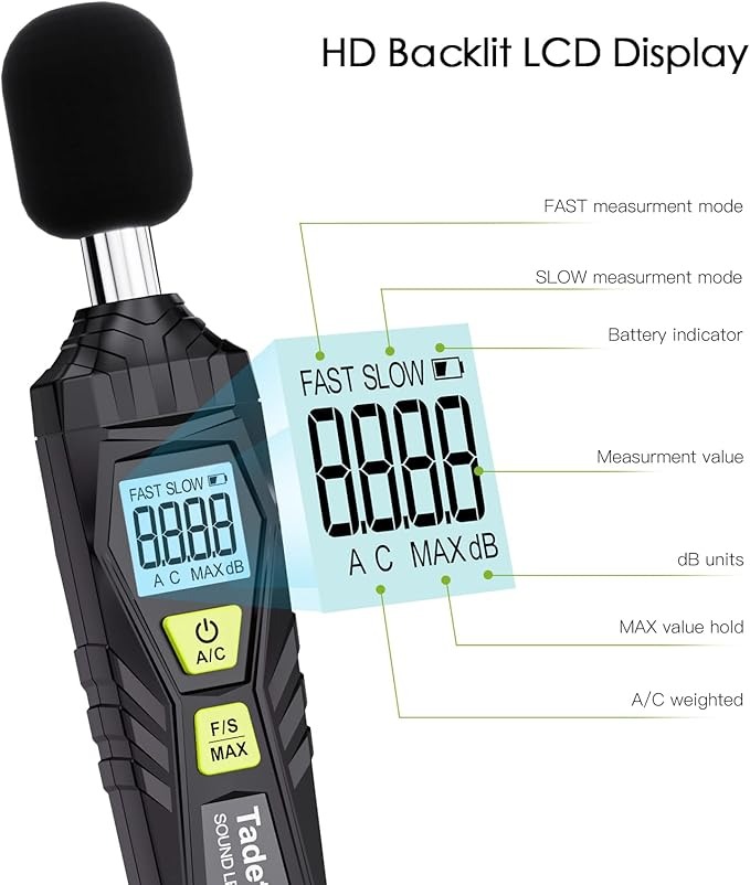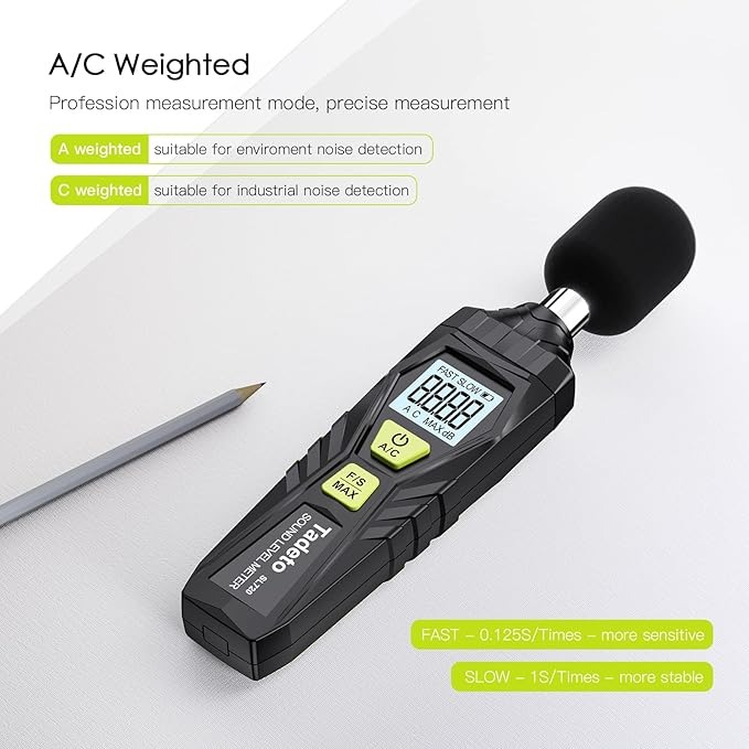 راحت و سبک وزن: سنج صدا Tadeto سبک وزن است و حمل آن آسان است. این به طور گسترده ای در کارخانه ها، حمل و نقل، اتاق کودک و دفاتر سیستم صوتی، کنترل کیفیت صدا در خانه ها، مدارس و سایت های ساخت و ساز استفاده می شود.