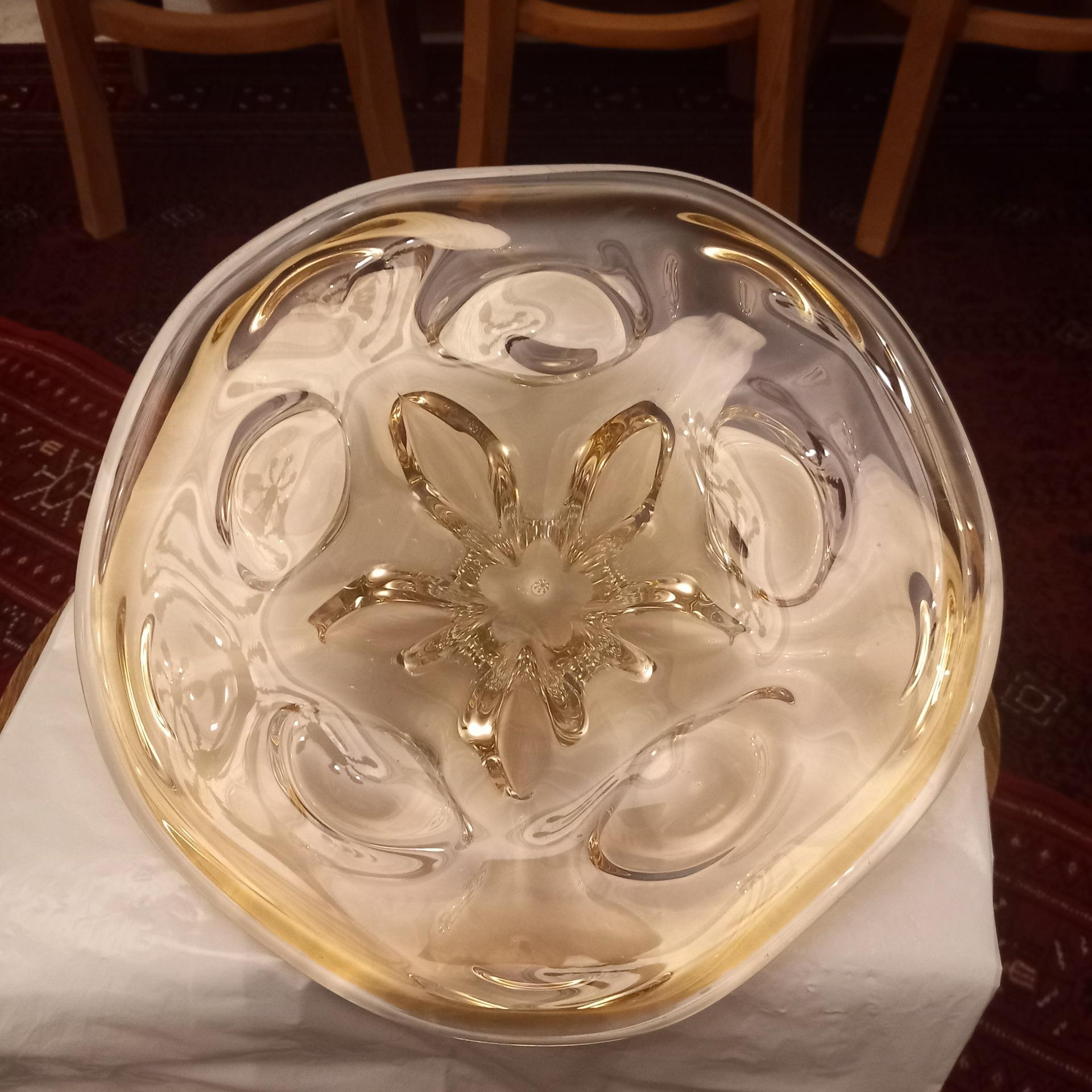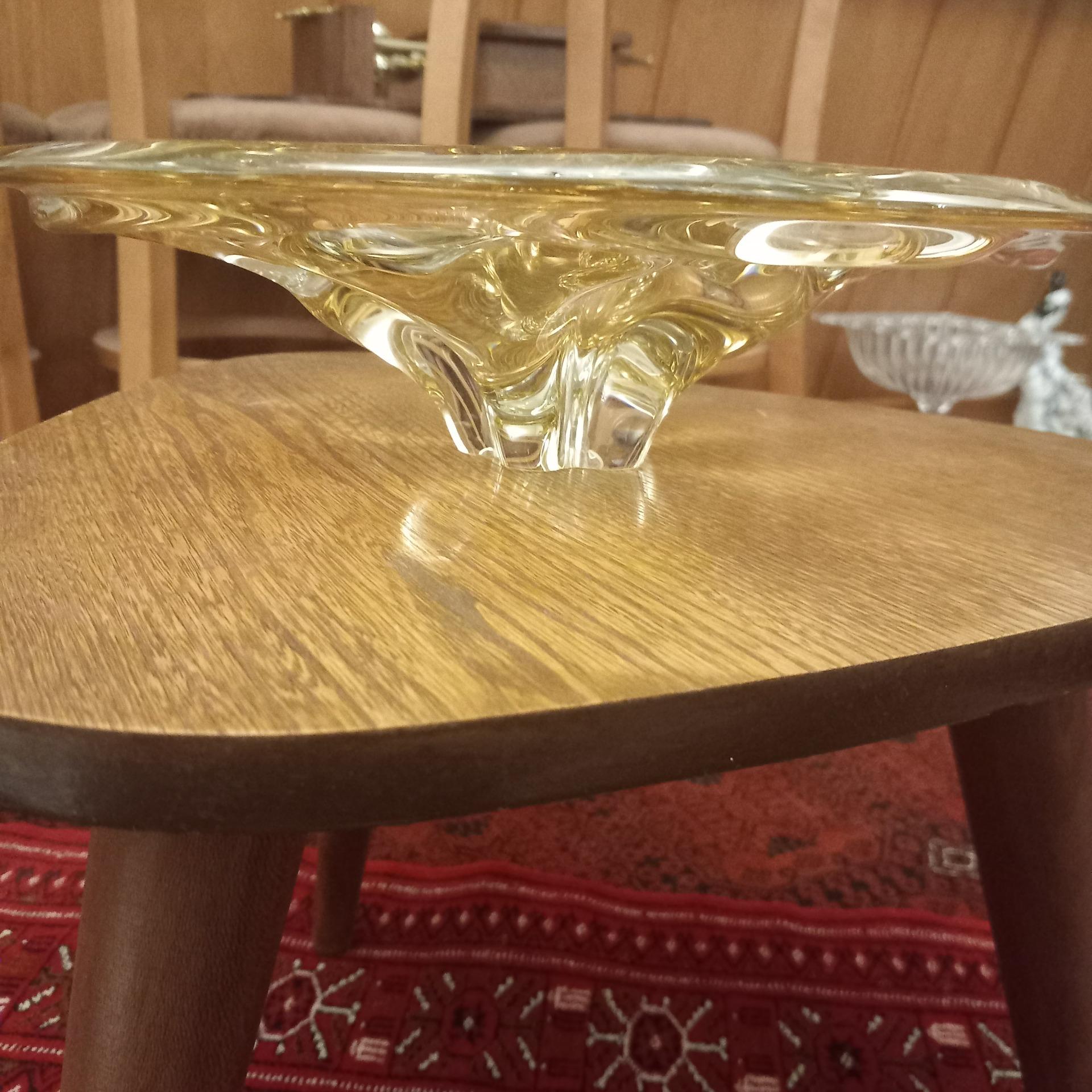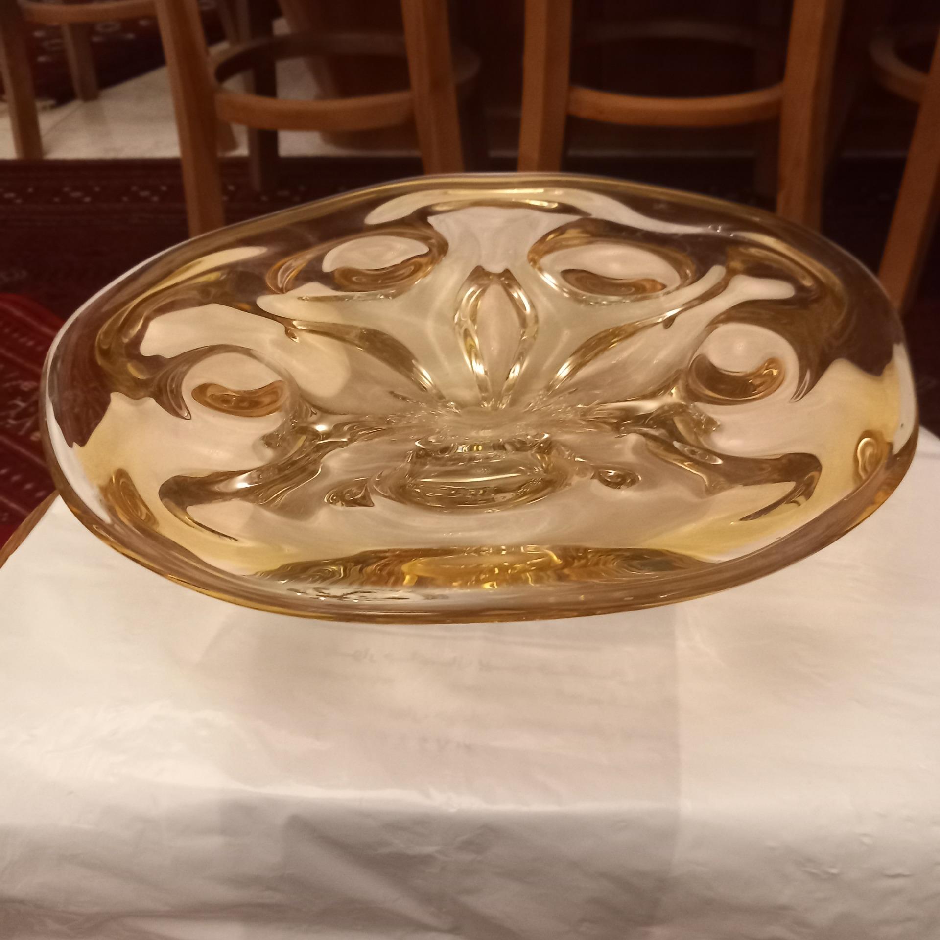 شیرینی خوری یا ظرف میوه کریستال چک قدیمی/ وزن سنگین/ بسیار خوشرنگ و زیبا/ ابعاد: قطر:32سانت، ارتفاع:9سانت/