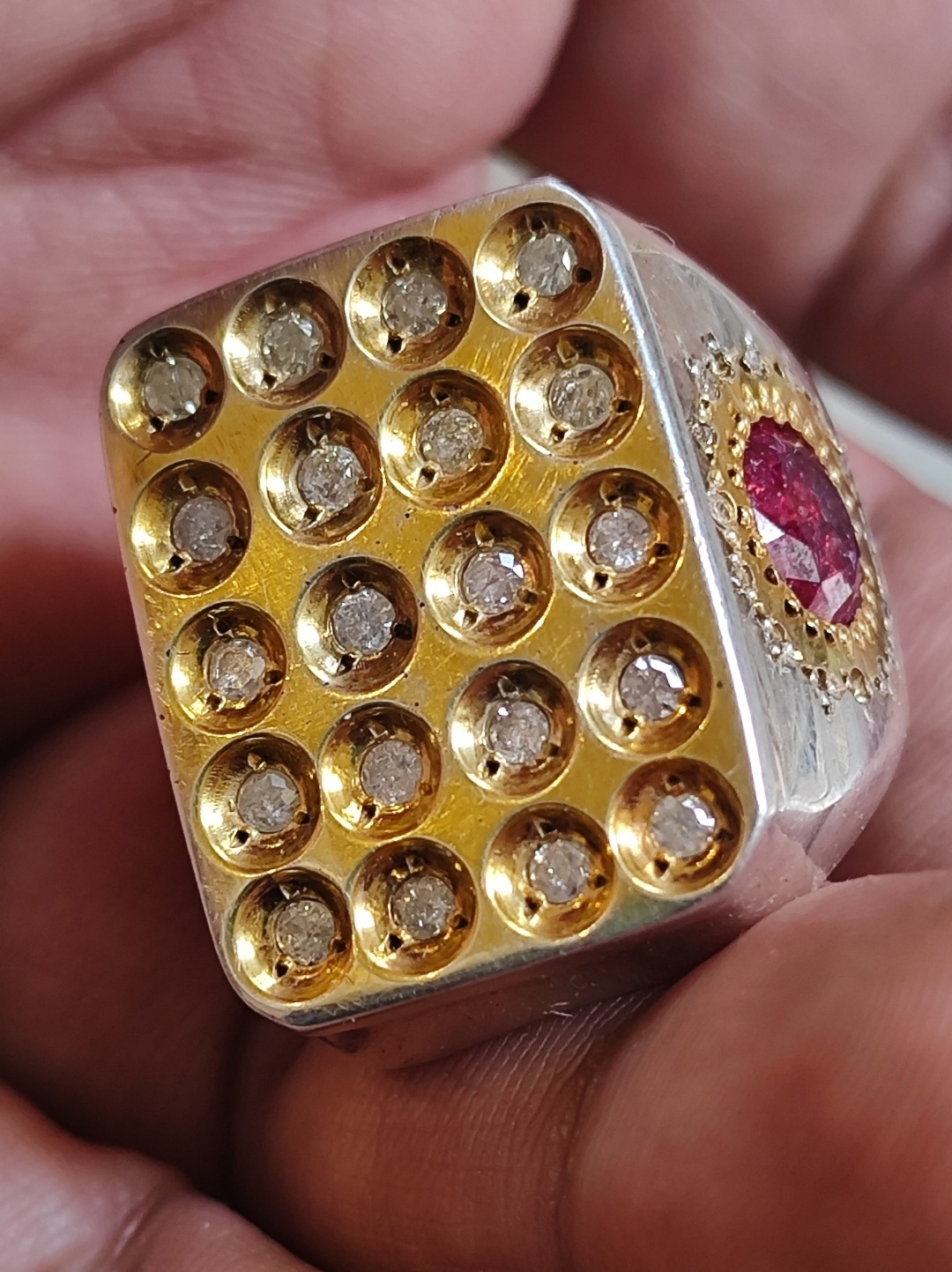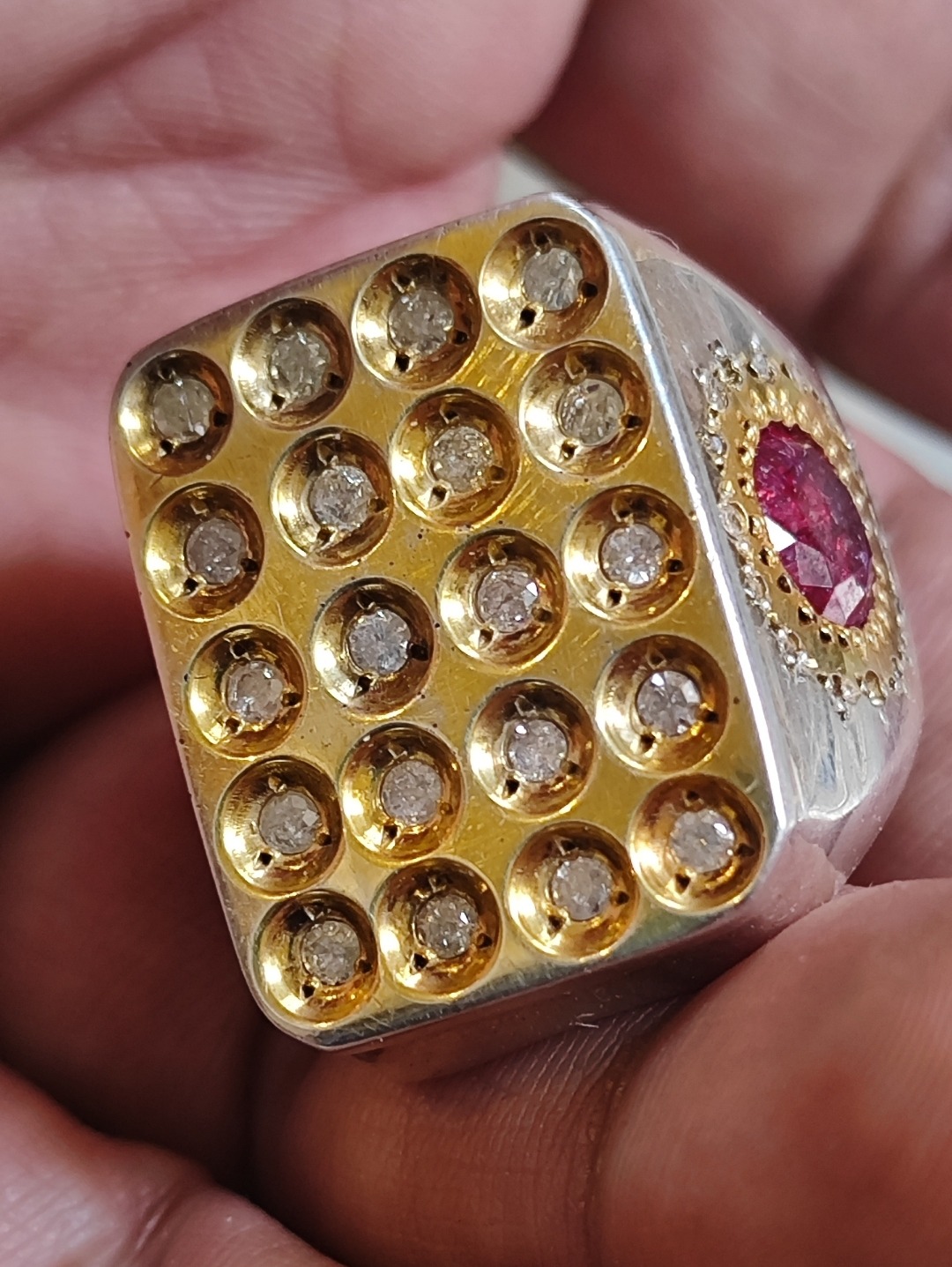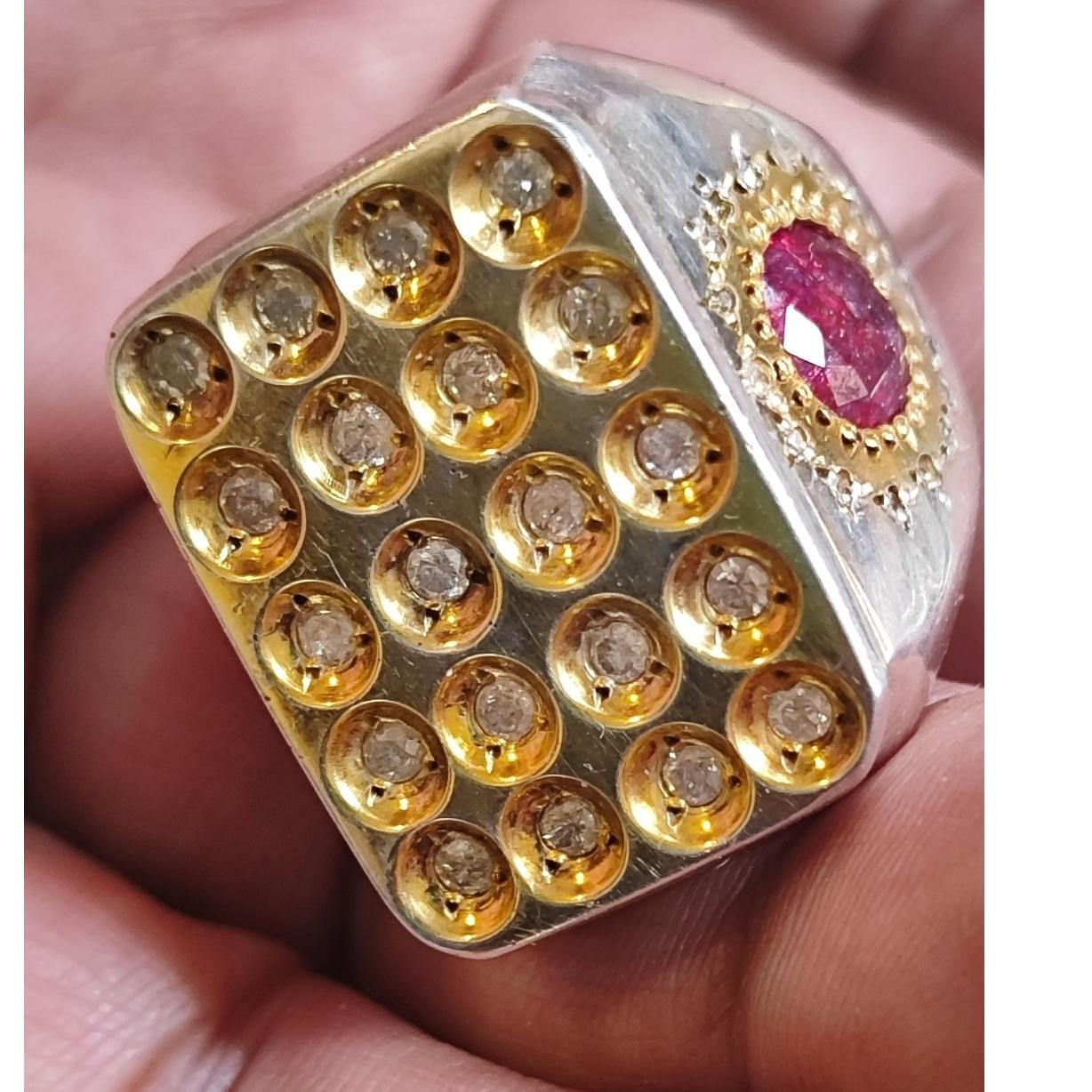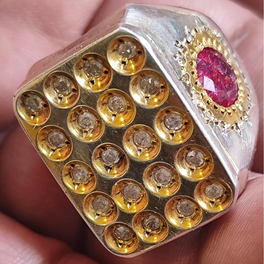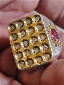 انگشتر برلیان یا الماس 20 نگین کاملا طبیعی همراه دو نگین جواهری طبیعی در دو طرف انگشتر مطابق تصاویر