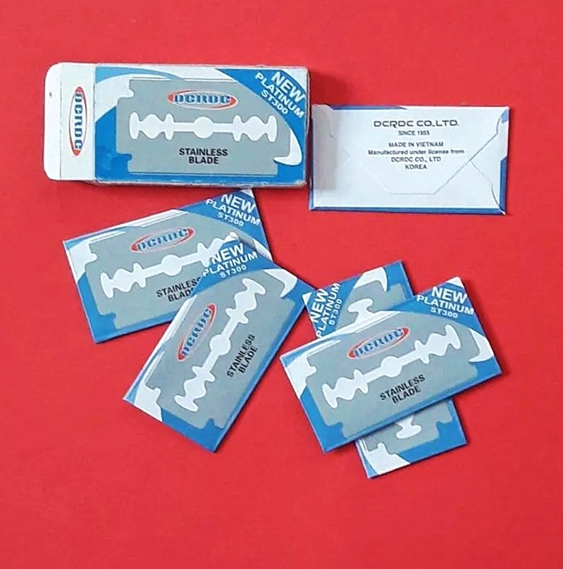 به دلیل سالهای زیاد، رنگ و روی بسته تیغ کمی رفته اما پوشش کاغذی تیغ های داخل بسته همگی کاملا نو و تمیز و باکیفیت هستند