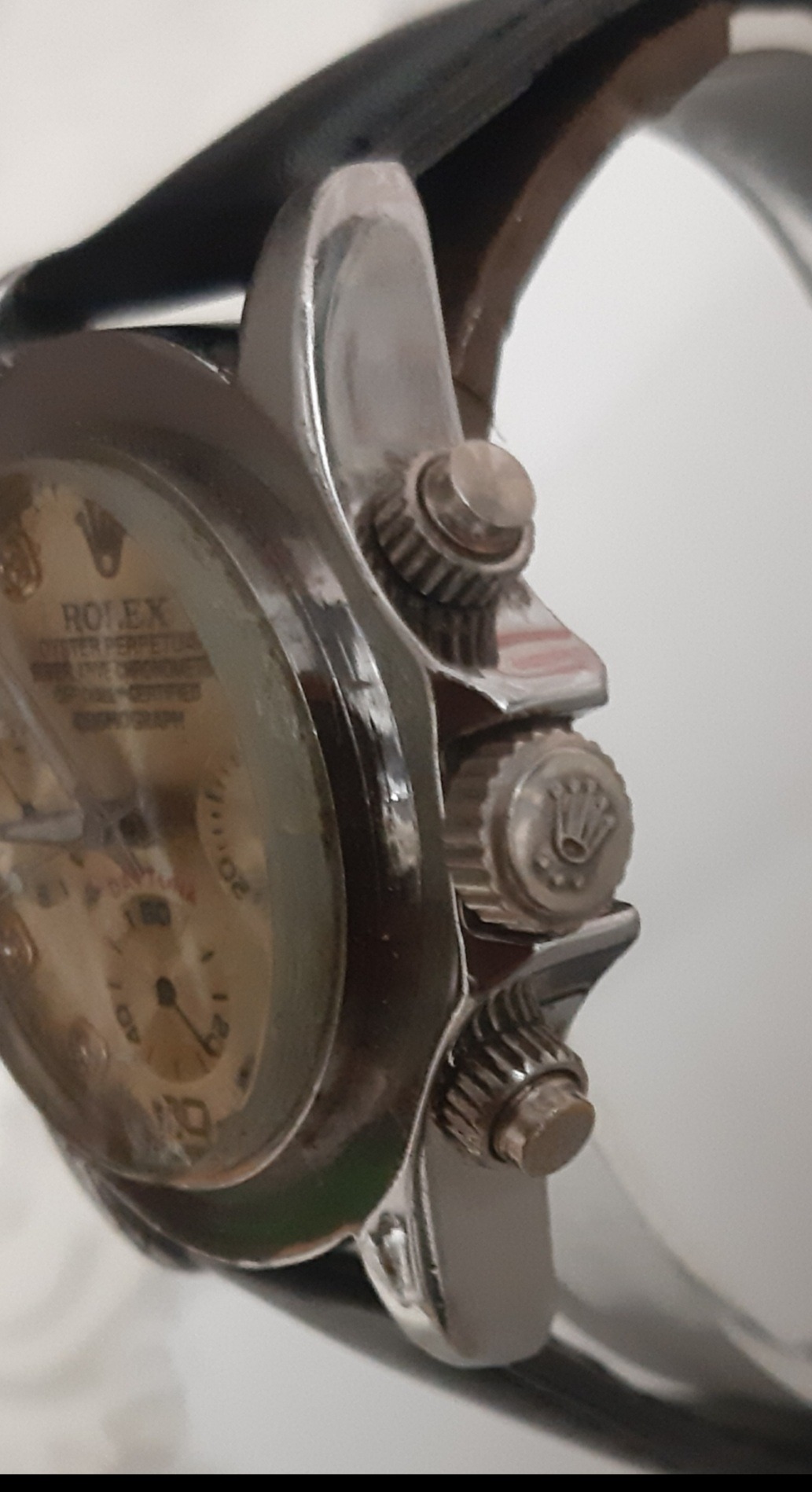 صفحه مدل خاص موتور ژاپنی با کیفیت،لب پریدگی کوچیک شیشه دارد شیشه ضخیم و بادوام ضد خش و قوس دار، نمونه با کیفیت رولکسهای جدید کوارتز،پمپها و عقربه ها کوچیک مدل هست و غیرفعال هست، بند نو با کیفیت ، کارکردخوب و دقیق