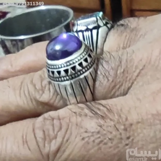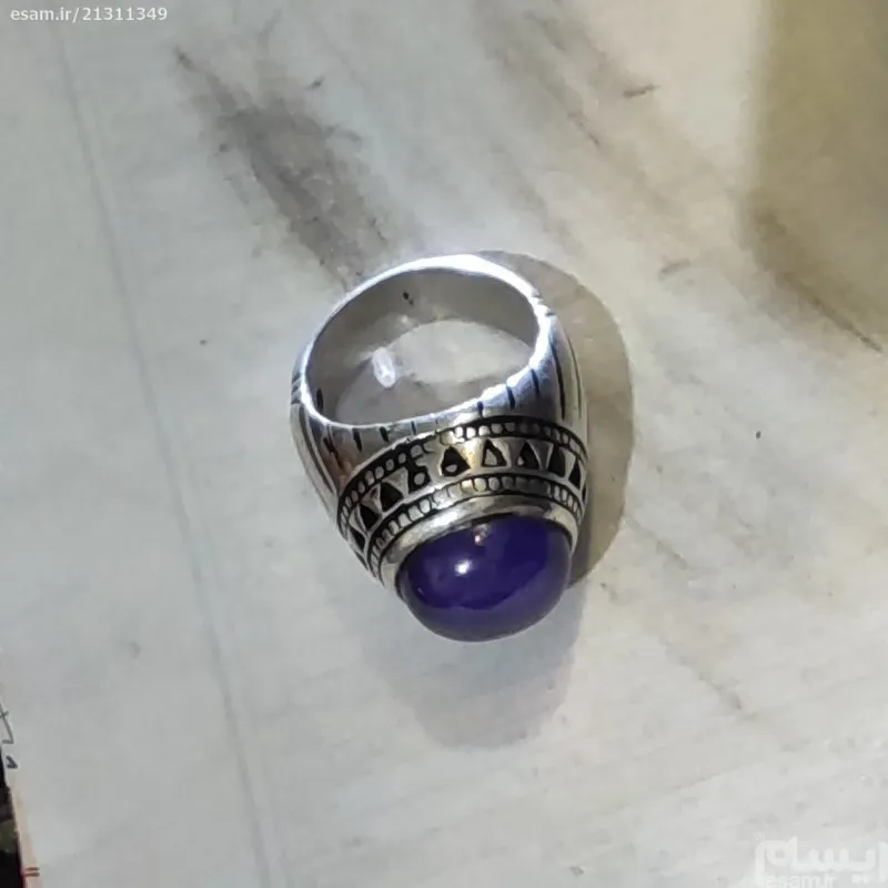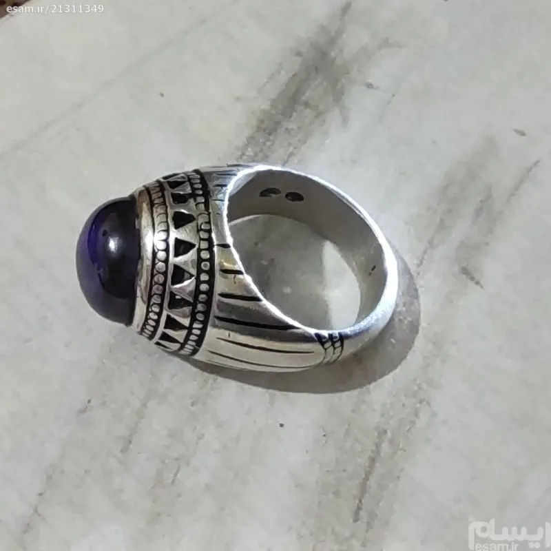 انگشتر نقره یاقوت بنفش لعل رکاب دست ساز تهران رسول به وزن حدوداً 31گرم بسیار زیبا و خوش دست وانتیک