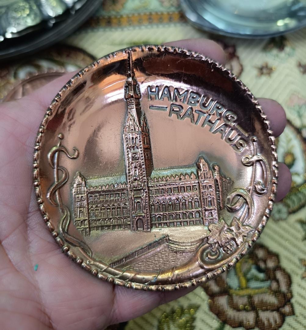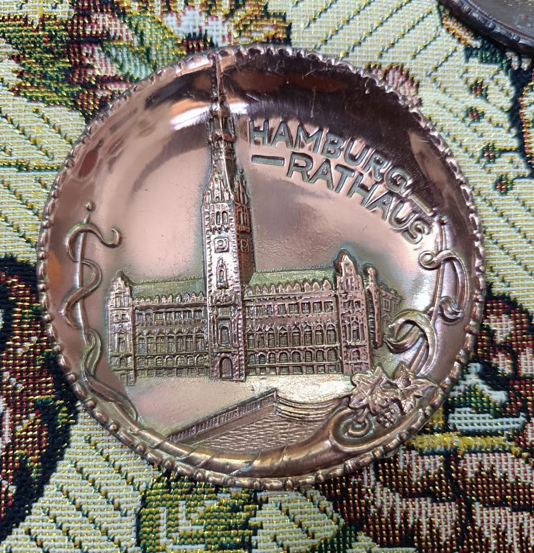 یک عدد پلاک دیوار کوب قدیمی آلمانی جنس مسی قطورو ضخیم ، یادبود تالار شهر هامبورگ ، نو و سالم و تمیز ، تمامًاً نقش برجسته ، کیفیت و ابعاد مطابق تصویر