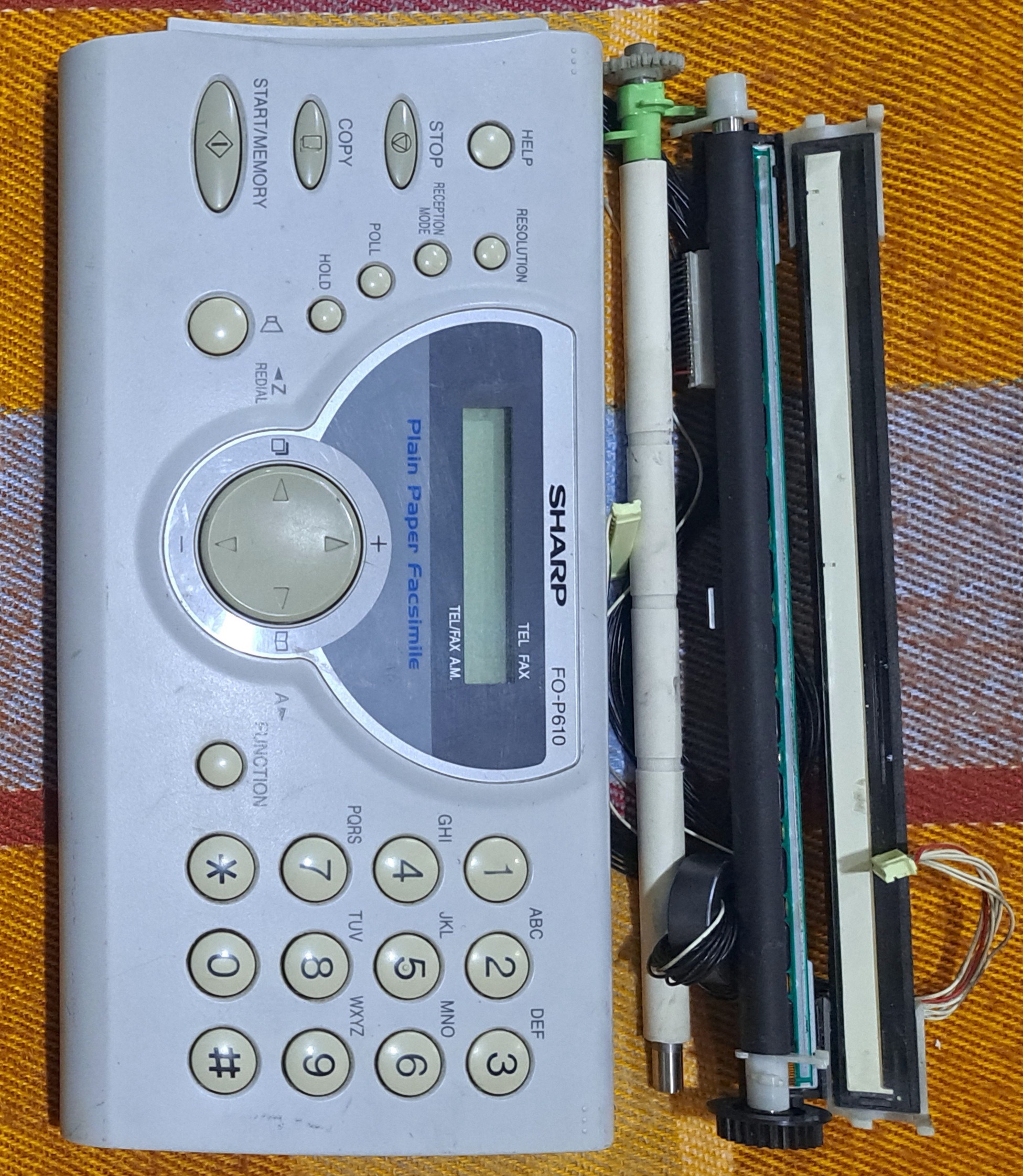 قطعات الکترونیکی کاملا سلامت به همین صورتی که باز شده تست شده وروشن است سلامت سلامت خود فکس قطعات مکانیکی مشکل داشت باز کردم ویک سری قطعات مکانیکی ورول فاکس هم همراهش هست اما سیستم تلفن وشماره انداز ومخاطب یاب وصفحه نمایشگرکاملا سلامت وکارمی کند به درد تعمیر کار میخورد که بتواند قطعاتش را جایگزین مدل این فکس نماید ویا تلفن دیگری باب دلش بسازد اصلا تقاضای تخفیف نفرمائید ارسال رایگان