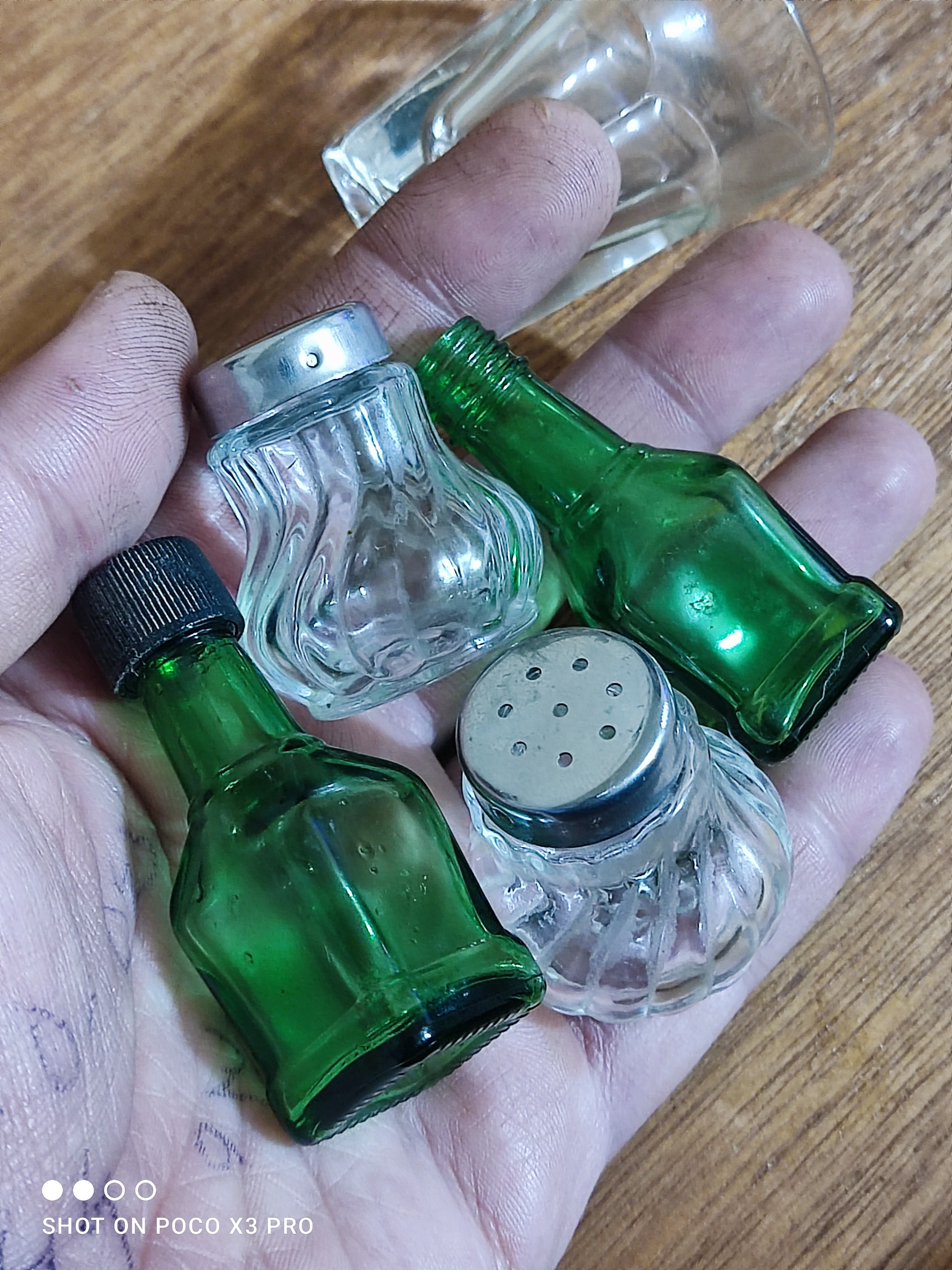 دو عدد نمکدون بلور فسقلی قدیمی خاص و کمیاب ساخت المان غربی مطابق تصاویر به همرا دو عدد بطری فسقلی خارجی قدیمی و یک عدد استکان فسقلی قدیمی همگی قدیمی و خارجی قیمت برای همشه