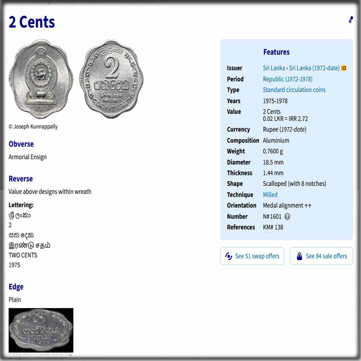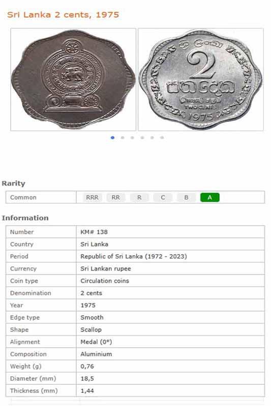 سکه 2 سنت سریلانکا 1975 (نایاب)
