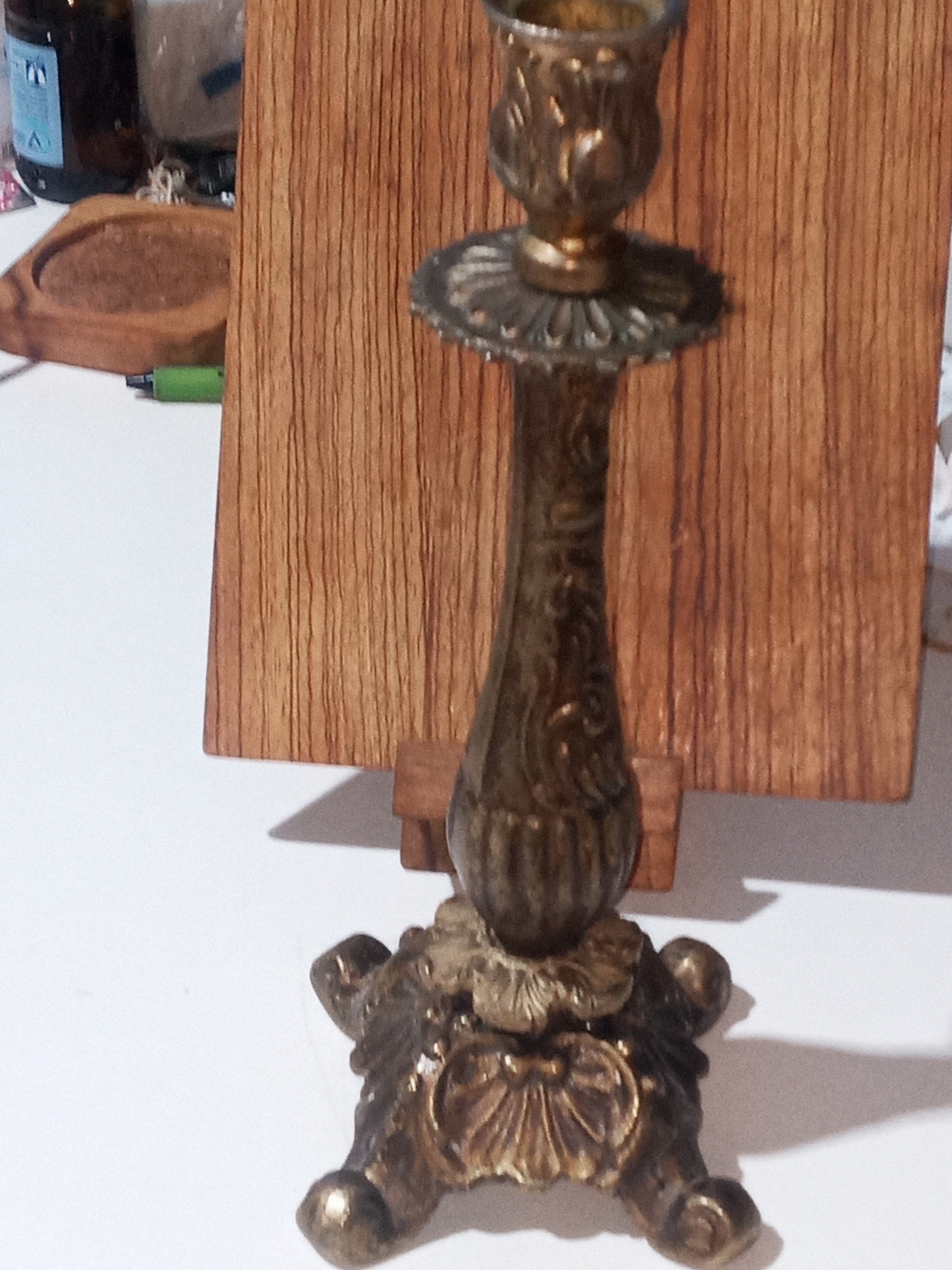 تک شمعدان برنجی انتیک فرنگی کلاسیک سنگین