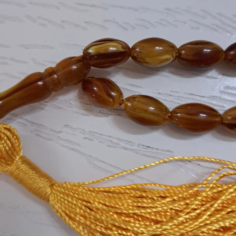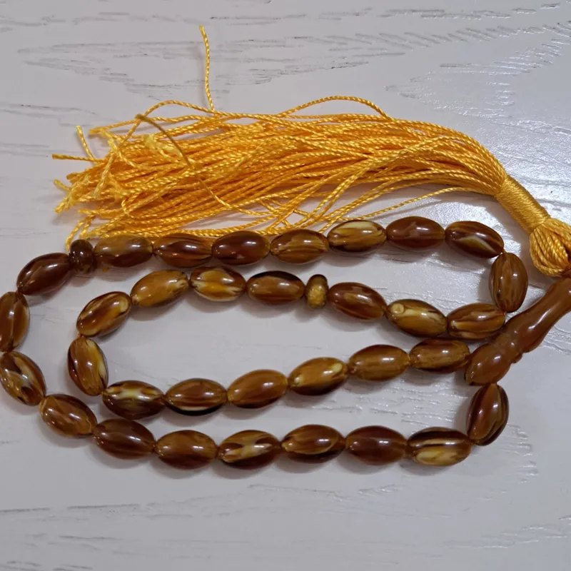 این تسبیح 33 دانه به رنگ قهوه ای دارای عطر خاصی شبیه صندل و عود است.عطر گرمی دارد و برای سرد مزاجان بسیار مفید است.