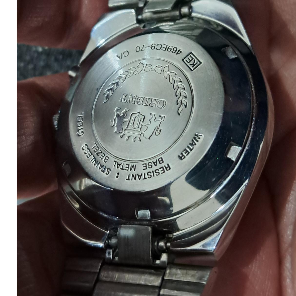 ساعت مردانه ORIENT مدل 469EG0-70 CA با موتور اتوماتیک ژاپنی، بدنه استیل ضد زنگ و طراحی کلاسیک. ظاهر شیک و کیفیت ساخت بالا، گزینهای مناسب برای کلکسیونداران و استفاده روزمره  و علاقهمندان به ساعتهای اصل ژاپنی. عکسها مشخص است فیلم هم در صورت نیاز ارسال میگردد. رنگ صفحه آرامشبخش.کارمرد ساعت دقیق .نمایشگرهای تاریخ سالم. ساعت در حد نو. کافیست پشت درب ساعت را بیشتر نگاه کنید. آماده برای یک عمر استفاده. قیمت بسیار منصفانه با این قیمت دلار