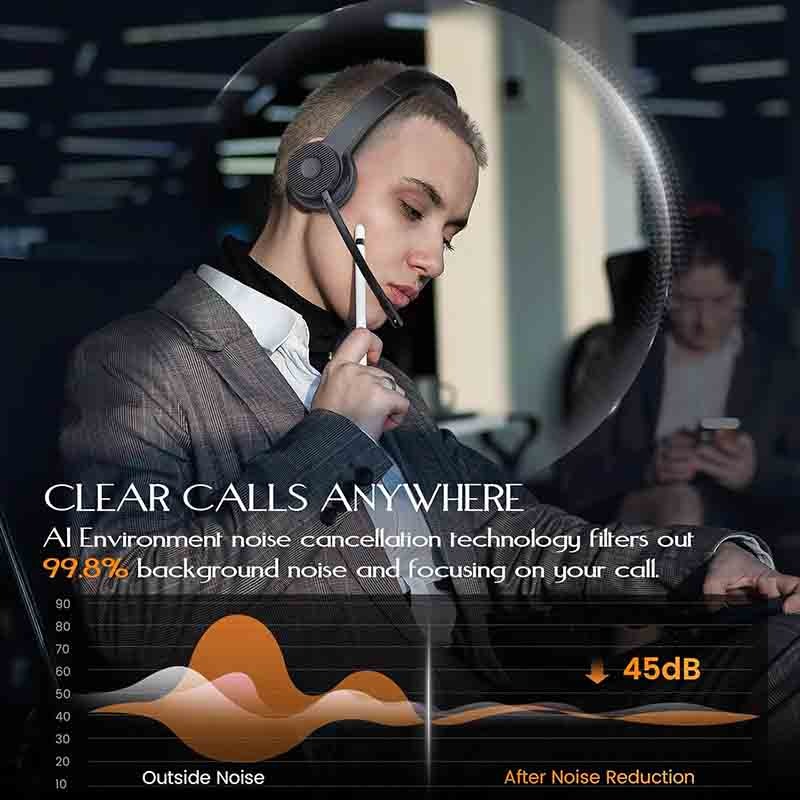 تماس شفاف و کارآمدهدست بیسیم EKSA H16 با تراشه VoicePure ENC داخلی خود میتواند نویز را تا عمق بیش از 42 دسیبل کاهش دهد و به طور کامل تا 99.8 درصد از نویز پسزم را حذف کند و به صدای تغییر کند هنگام پاسخ دادن به تماسها کمک کند.