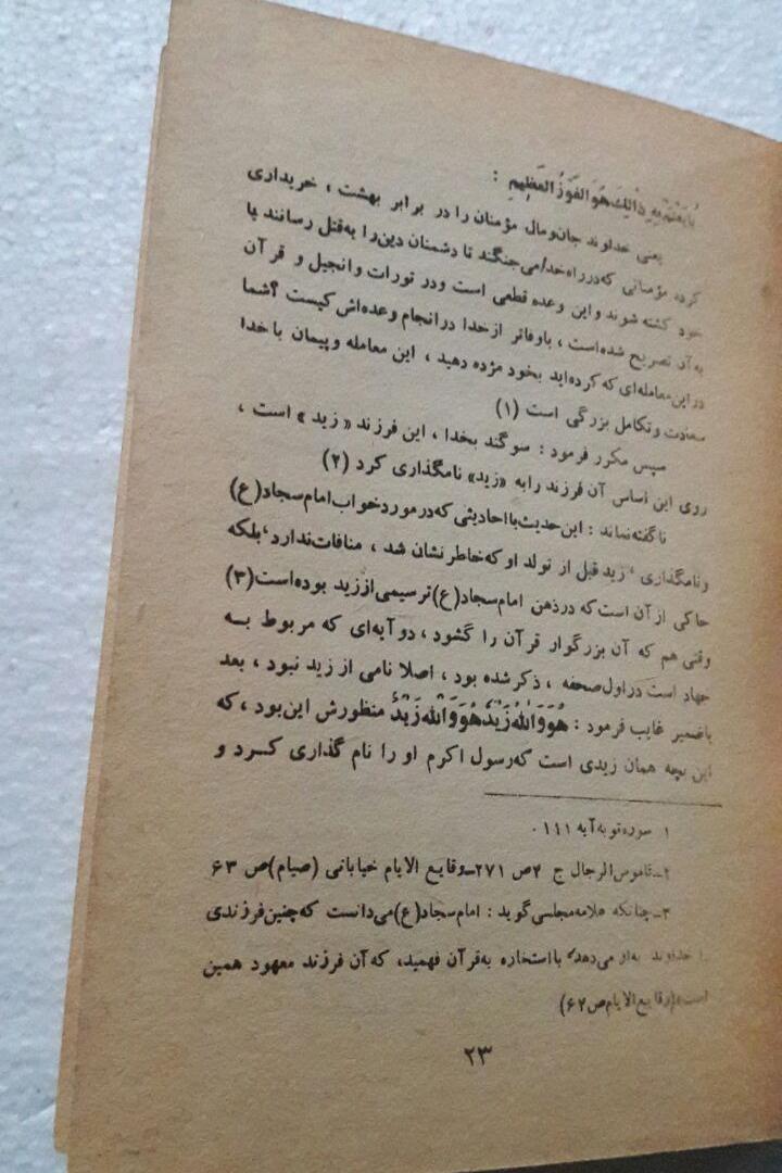 _کتاب زید شهید انتقامگر بدون کسری است.گوشه دو سه برگ شکستگی جزئی دارد.بدون تاریخ چاپ است ولی مقدمه کتاب سال1394 قمری دارد که برابر با سال 1353خورشیدی است.با قطع جیبی 183صفحه می باشد.