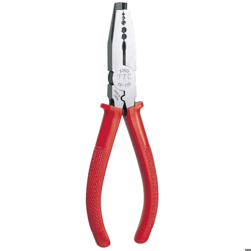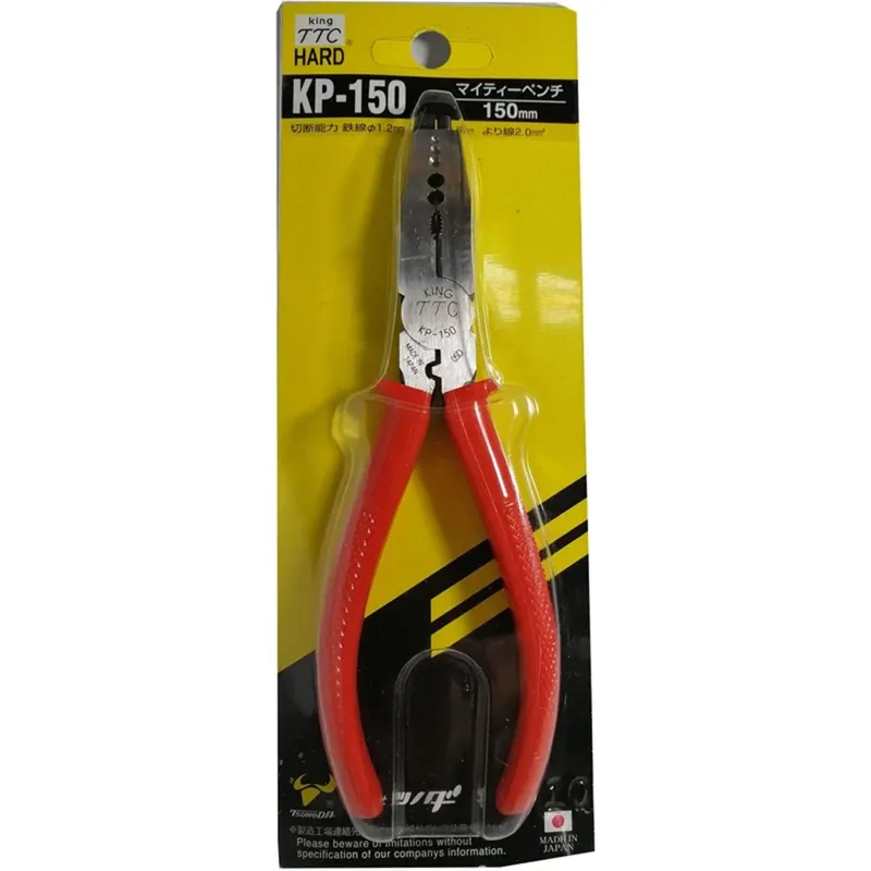 سری king ttc از سری محصولات شرکت ژاپنی تسونودا می باشد . از مشخصات بارز این سری می توان به کیفیت و دوام بالا اشاره نمود . انبردست مدل KP-150 از محصولات شرکت تسونودا می باشد که از کاربرد چندگانه بهره می برد . از این انبردست منحصربه فرد می توان برای برش و لخت کردن سیم ، خم کردن ، پیچاندن ، سفت کردن مهره ها و ... استفاده نمود . ظرفیت برش این محصول برای سیم های استیل 16 ، مس 10 ، برنج 12 و آهن نرم 12 میلی متر می باشد . بدنه این انبردست از بهترین آلیاژ ساخته شده است تا دوام بالایی از خود نشان دهد . روی دسته این انبر از روکش پی وی سی ضد لغزش استفاده شده است. تمامی محصولات تسونودا ساخت ژاپن می باشند و این موضوع روی بدنه و بسته بندی محصول حک شده است .