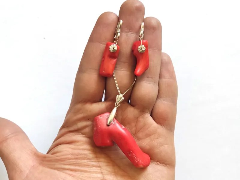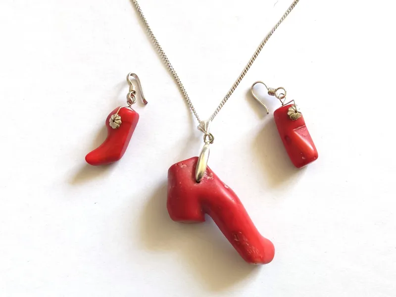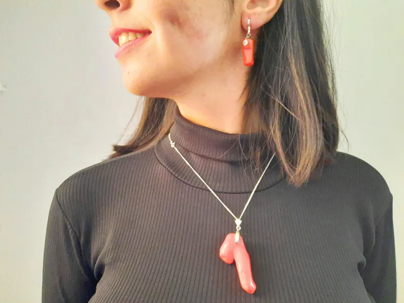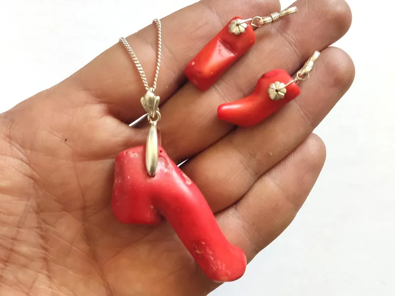 مرجان خیزرانی اصل کاملا طبیعی است. همراه با گیره و زنجیر نقره 925. رنگ این مرجان نسبت به استون هیچ واکنشی نشان نمی دهد اما معمولا رنگ سرخ برای مرجان های خیزرانی در تمام جهان بهسازی و تقویت شده است.