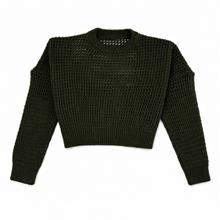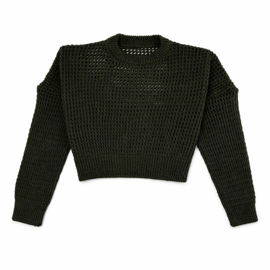 بافت زنانه راحتی سبز یقه گرد